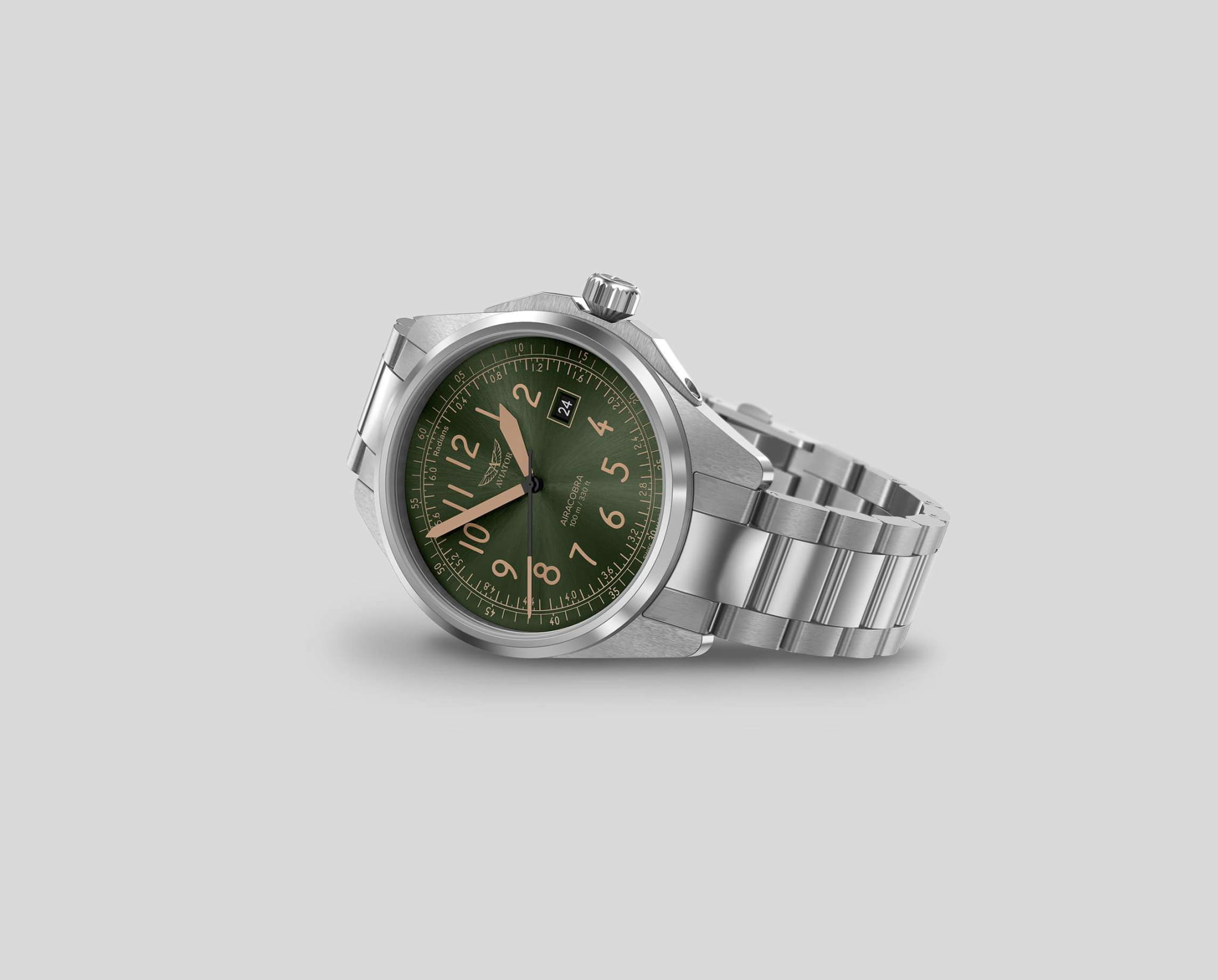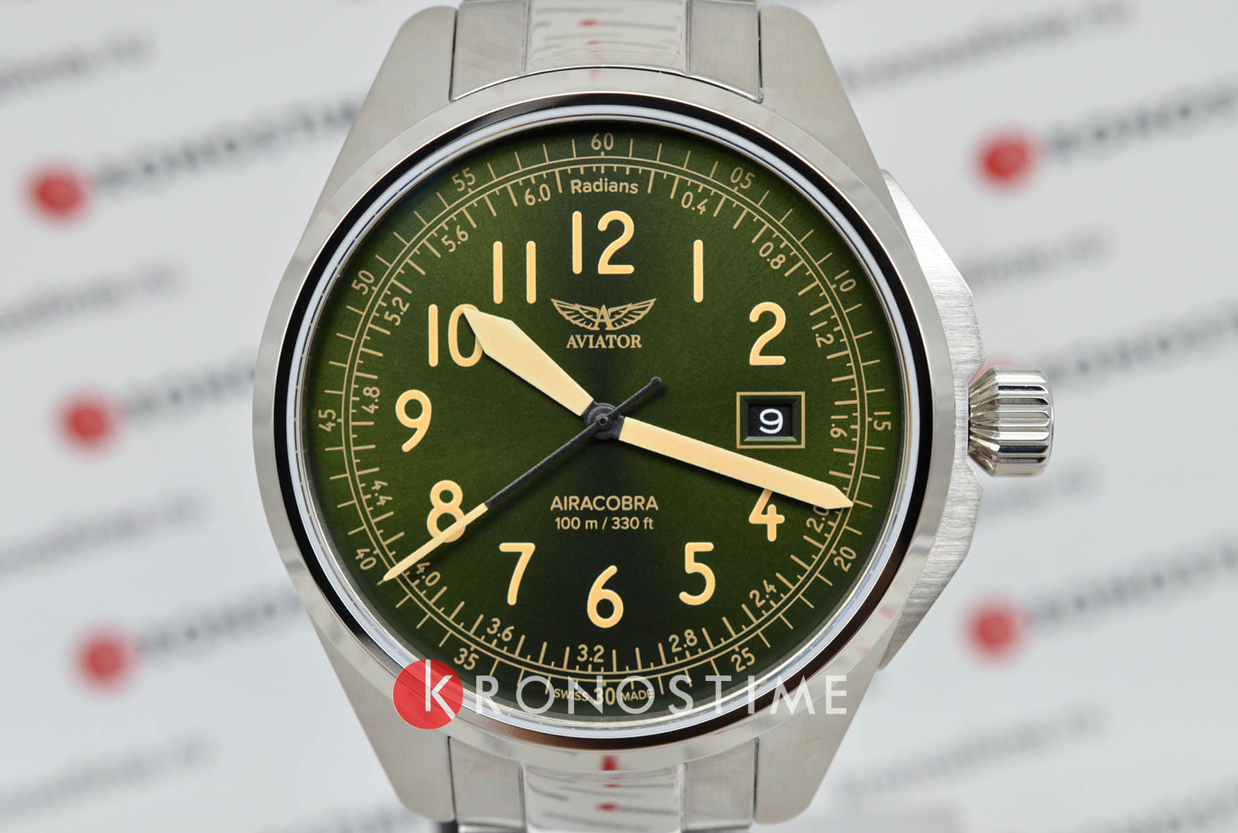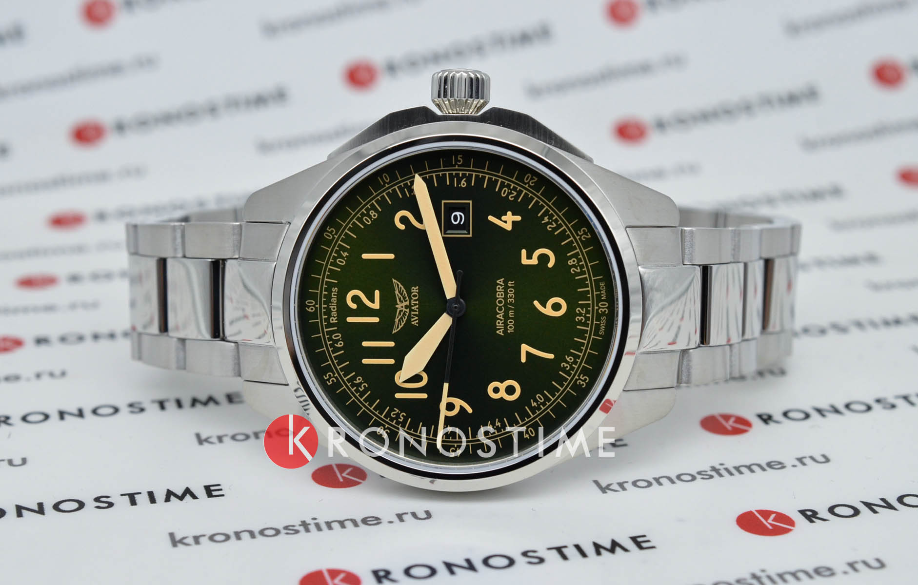 Aviator V.1.38.0.329.5 “Airacobra 43 Type A” — надёжные швейцарские пилотские часы с насыщенным функционалом и строгим авиационным дизайном. Корпус диаметром 42,8 мм выполнен из нержавеющей стали.