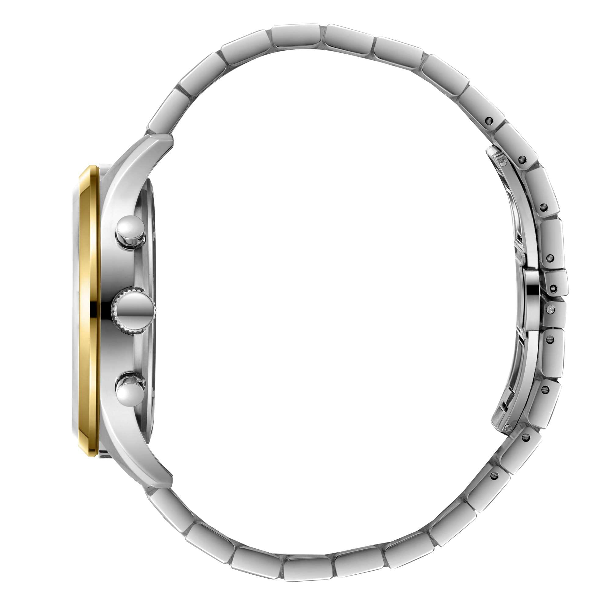 Американские мужские часы Beverly Hills Polo Club BP3779X.270 - это стильный мужской аксессуар, который сочетает элегантный дизайн и практичность. Корпус выполнен из нержавеющей стали серебристого цвета, диаметром 42,5 мм, что обеспечивает долговечность и утончённый внешний вид. Надежное минеральное стеклоМинеральное стеклоМинеральное стекло представляет собой искусственно выращенный минерал кварца. Такое стекло отличается особой устойчивостью к повреждениям и царапинам. Уступает по некоторым качествам сапфировому стеклу. с сапфировым покрытием защищает циферблат от царапин и обеспечивает долговечность. Неподвижный безельБезельВнешний ободок, закрепляющий стекло. В спортивных часах так называется поворотное кольцо с делениями на циферблате, выполняет роль таймера – замеряет отрезки времени на шкале. Неподвижный безель – элемент декора. Однонаправленно вращающийся безель на дайверских часах позволяет фиксировать моменты погружения и выныривания на поверхность. с IP-покрытиемIP-покрытиеМетод ионного напыления. Демонстрирует повышенную устойчивость к истиранию, окислению и химическим веществам. Под воздействием высокого давления и температуры около 1500°C молекулы металла надёжно соединяются с частицами корпуса часов. золотого цвета. Модель оснащена кварцевым механизмом, обеспечивающим высокую точность хода. Стальной браслет на застёжке-бабочке с кнопкамиЗастёжка "бабочка"Такой вид застёжки дополняется предохранителями, помогающими избежать случайного раскрытия браслета. Обладают изящным исполнением. обеспечивает комфортное ношение. Функциональность модели расширена за счёт индикации дня даты, дня недели и дополнительным 24-х часовым индикатором. Стрелки с люминесцентным покрытиемЛюминесцентное покрытиеПозволяет считывать показания времени в темноте. Производители наносят на стрелки, часовые индексы, безель или поверхность циферблата светонакопительный состав, дающий холодное свечение. позволяют легко считывать время даже в условиях недостаточного освещения. Водозащита 50 метров позволит защитить корпус от случайных брызг или капель дождя. Эта модель – отличный выбор для тех, кто ищет сочетание стиля, качества и функциональности. Часы станут не только полезным аксессуаром, но и выразительным элементом вашего имиджа.