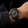 Мужские швейцарские часы-хронографХронографФункция позволяет измерять отрезки времени с особой точностью: часы, минуты, секунды. Верным признаком хронографа является наличие на циферблате 3 дополнительных окошек-счётчиков. с автоподзаводом Breitling Avenger B01 Chronograph 44 Night Mission Usn Bloodhounds SB01472A1B1X1. Сапфировое стеклоСапфировое стеклоПрочный и надёжный материал из кристалла сапфира синтетического происхождения, характеризующийся особой твёрдостью и устойчивостью к царапинам и повреждениям. устойчивое к появлению царапин, обладающее высокой прозрачностью. Класс водозащиты: 300 метров, позволит плавать, нырять и заниматься другими водными видами спорта. Корпус часов изготовлен из керамики. Стрелки и метки с люминесцентным покрытиемЛюминесцентное покрытиеПозволяет считывать показания времени в темноте. Производители наносят на стрелки, часовые индексы, безель или поверхность циферблата светонакопительный состав, дающий холодное свечение.. Шкала тахиметра на циферблате. Окошко даты находится в положении 6 часов. Кожаный ремешок на раскладной застёжкеРаскладная застёжкаТакой тип застёжки используется только на браслетах из металла. Она никогда не раскрывается полностью, происходит разделение на 2 и более частей. Раскладывающая застёжка снизит вероятность потери часов к минимуму..
