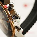Корпус часов изготовлен из нержавеющей стали и 18-каратного красного золота. Черный каучуковый ремешок с застежкой, открывающейся нажатием кнопки. Класс водозащиты: 200 метров, позволит плавать, нырять и заниматься другими водными видами спорта.