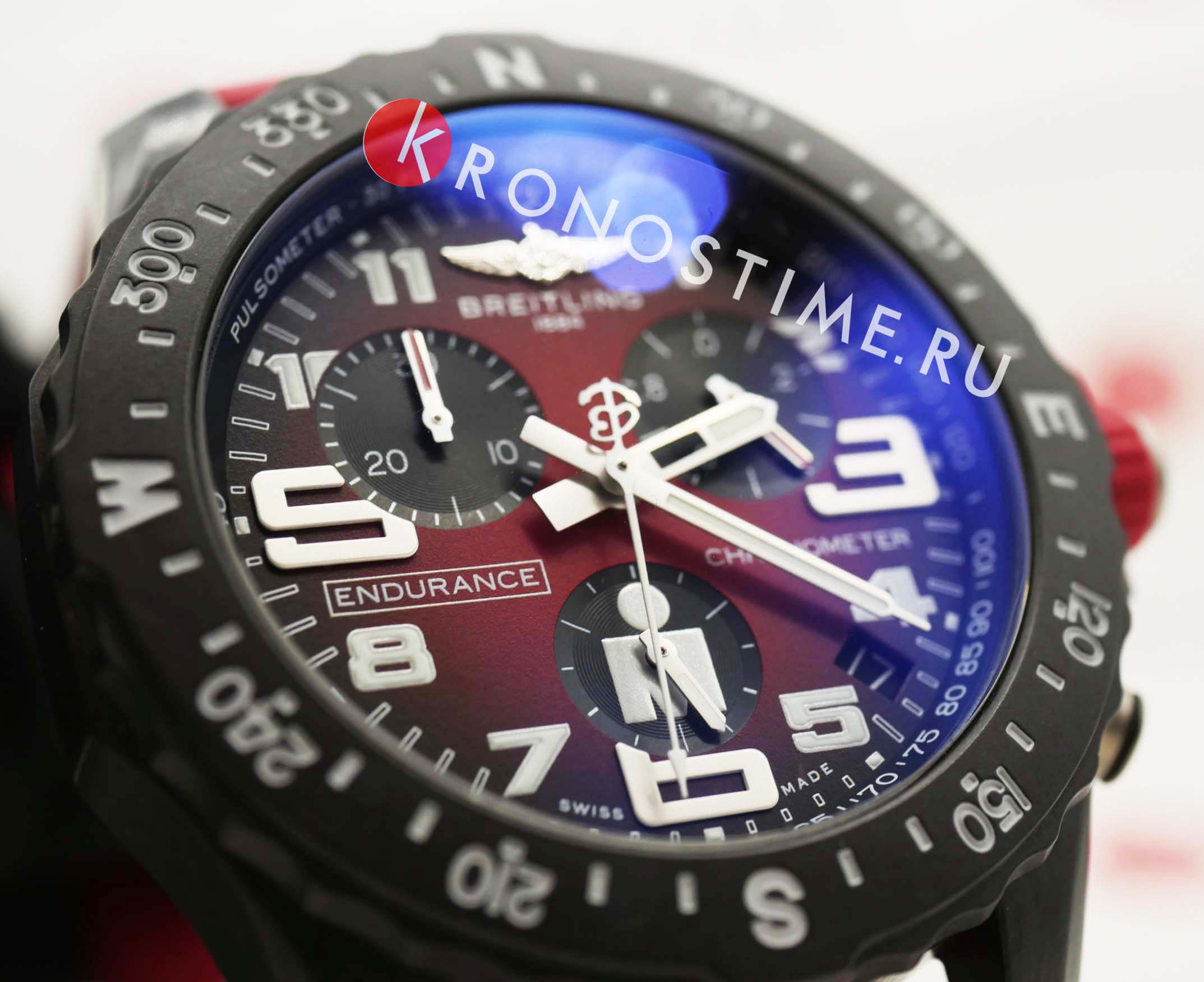 Швейцарские часы Breitling Endurance Pro IRONMAN® X823109A1K1S1 с узнаваемым красным циферблатом IRONMAN® и фирменным каучуковым ремешком с двойной классической застежкой Breitlight® оснащена калибром Breitling 82 и сертифицированным Швейцарским институтом официального тестирования хронометров (COSC) кварцевым механизмом хронографа SuperQuartz™, обеспечивающим исключительную точность.