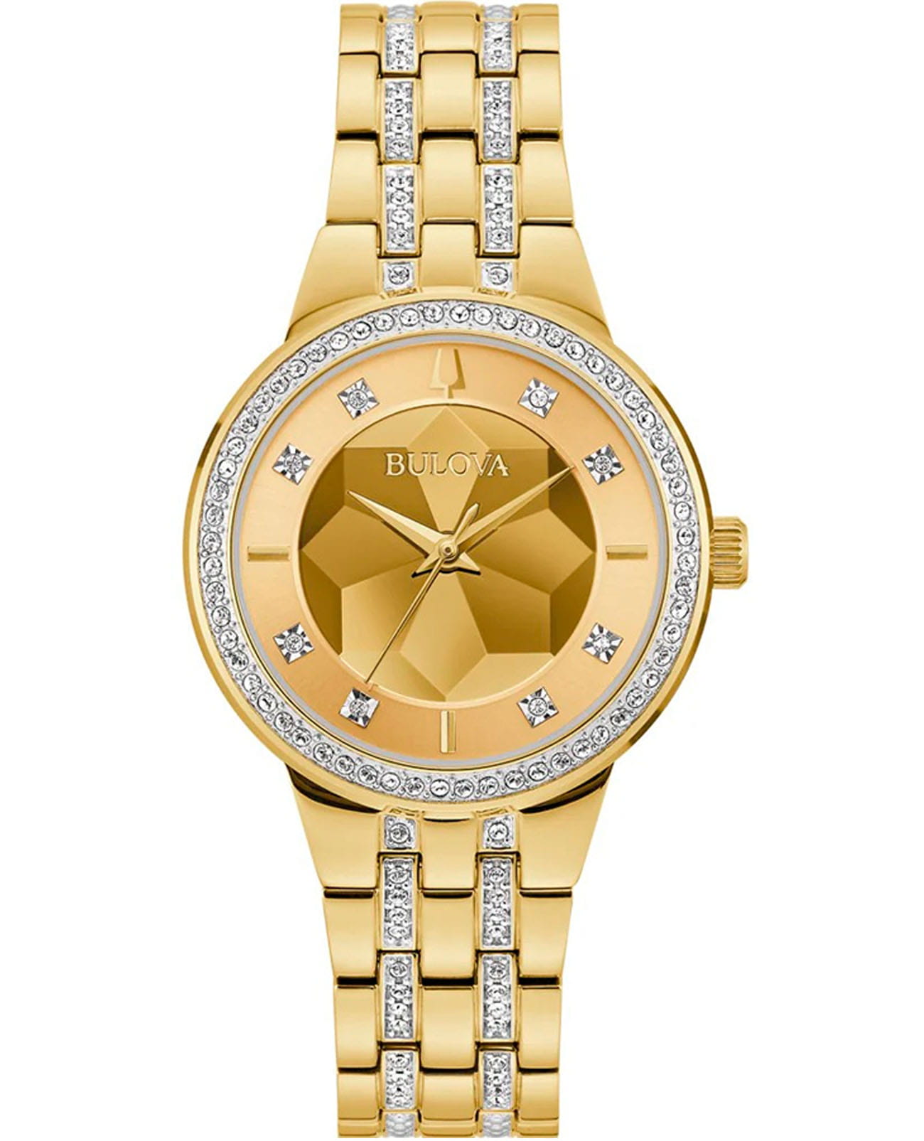 Женские кварцевые часы Bulova Crystal Ladies 97L176 – отражающий идеальное сочетание современного дизайна, надёжности и функциональности. Элегантный облик станет превосходным завершением образа, наделив его индивидуальным характером. Корпус из нержавеющей стали с IP-покрытиемIP-покрытиеМетод ионного напыления. Демонстрирует повышенную устойчивость к истиранию, окислению и химическим веществам. Под воздействием высокого давления и температуры около 1500°C молекулы металла надёжно соединяются с частицами корпуса часов., диаметром 32 мм идеально сбалансирован и элегантен. Минеральное стеклоМинеральное стеклоМинеральное стекло представляет собой искусственно выращенный минерал кварца. Такое стекло отличается особой устойчивостью к повреждениям и царапинам. Уступает по некоторым качествам сапфировому стеклу. защищает циферблат от царапин и устойчивое к мелким механическим повреждениям. БезельБезельВнешний ободок, закрепляющий стекло. В спортивных часах так называется поворотное кольцо с делениями на циферблате, выполняет роль таймера – замеряет отрезки времени на шкале. Неподвижный безель – элемент декора. Однонаправленно вращающийся безель на дайверских часах позволяет фиксировать моменты погружения и выныривания на поверхность. и браслет украшены 120 кристаллами Swarovski. Стальной браслет на раскладной застёжкеРаскладная застёжкаТакой тип застёжки используется только на браслетах из металла. Она никогда не раскрывается полностью, происходит разделение на 2 и более частей. Раскладывающая застёжка снизит вероятность потери часов к минимуму. с IP-покрытиемIP-покрытиеМетод ионного напыления. Демонстрирует повышенную устойчивость к истиранию, окислению и химическим веществам. Под воздействием высокого давления и температуры около 1500°C молекулы металла надёжно соединяются с частицами корпуса часов. обеспечивает комфортное ношение. Водозащита 30 метров позволит защитить корпус от случайных брызг или капель дождя. Эта модель – отличный выбор для тех, кто ищет сочетание стиля, качества и функциональности. Часы станут не только полезным аксессуаром, но и выразительным элементом вашего имиджа.