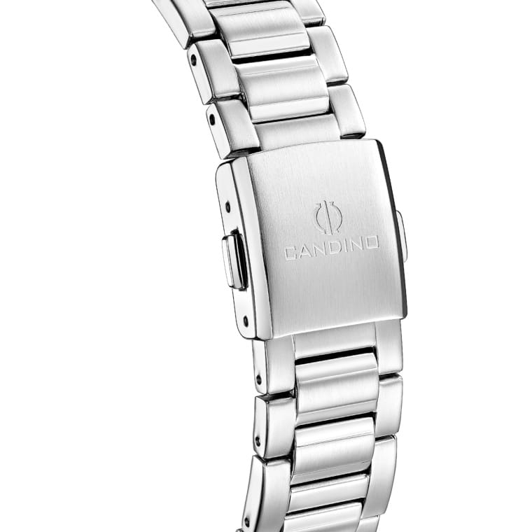 Мужские кварцевые часы Candino C4785/3 — это стильный и надёжный аксессуар швейцарского производства, сочетающий элегантность и функциональность. Корпус круглой формы выполнен из нержавеющей стали и защищён сапфировым стекломСапфировое стеклоПрочный и надёжный материал из кристалла сапфира синтетического происхождения, характеризующийся особой твёрдостью и устойчивостью к царапинам и повреждениям., устойчивым к царапинам. Циферблат зелёного цвета оформлен штрихами в качестве индикации, а стрелки и метки оснащены люминесцентным покрытиемЛюминесцентное покрытиеПозволяет считывать показания времени в темноте. Производители наносят на стрелки, часовые индексы, безель или поверхность циферблата светонакопительный состав, дающий холодное свечение., обеспечивающим хорошую читаемость в темноте. Окошко даты расположено на отметке 3 часа, что делает часы практичными в повседневном использовании. Браслет из нержавеющей стали фиксируется на раскладной застёжкеРаскладная застёжкаТакой тип застёжки используется только на браслетах из металла. Она никогда не раскрывается полностью, происходит разделение на 2 и более частей. Раскладывающая застёжка снизит вероятность потери часов к минимуму., обеспечивая удобство и надёжность ношения. Водонепроницаемость 50 м позволяет использовать часы в повседневных условиях, защищая от случайных брызг и капель дождя. Модель подчёркивает индивидуальность и хороший вкус владельца, оставаясь универсальным выбором для любого образа. В комплекте предусмотрены два ремешка из кожи и текстиля.