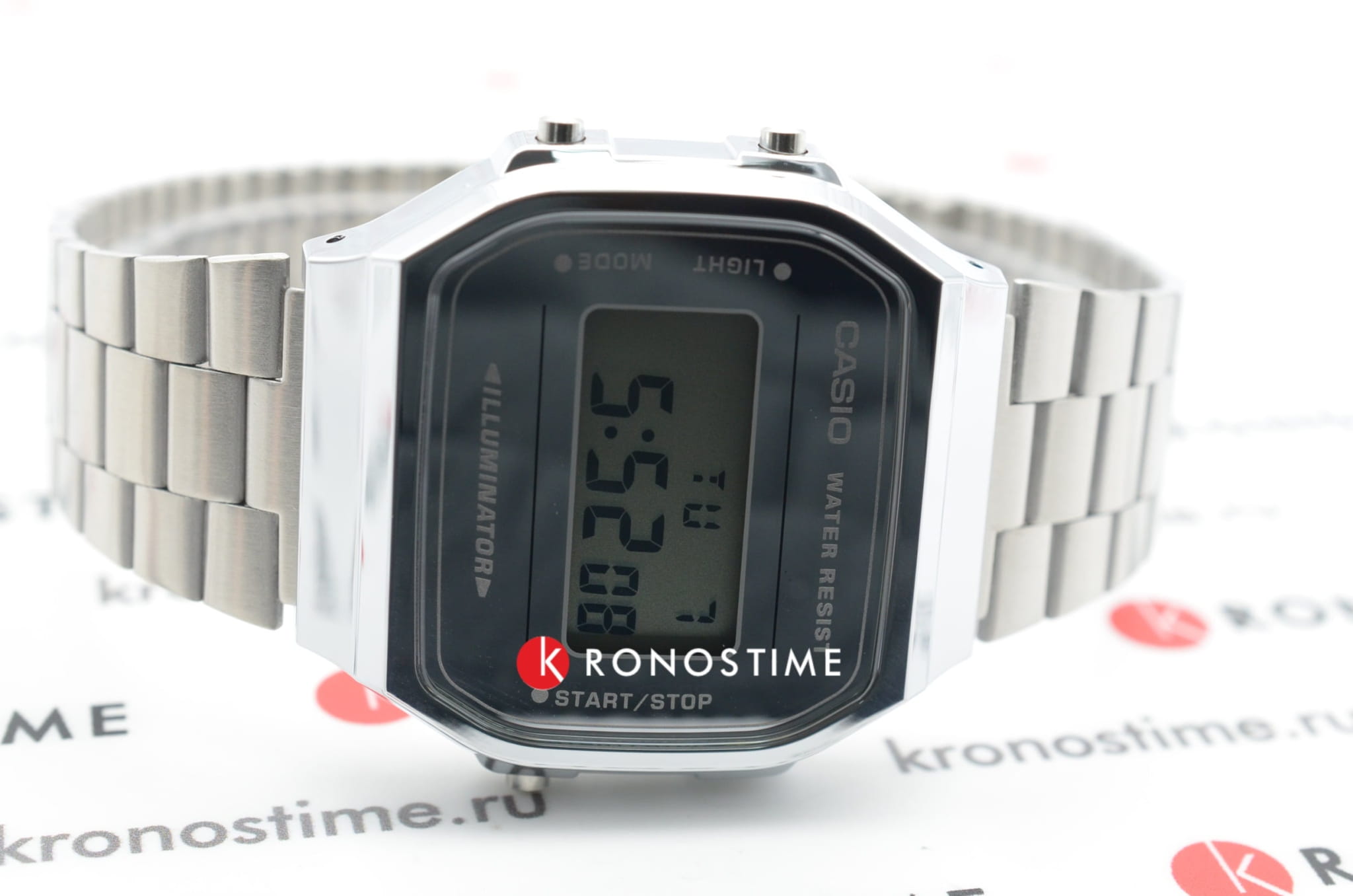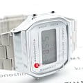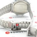 Серебристая цветовая гамма подойдёт к любой одежде, предоставляя простор для экспериментов. Цифровой дисплей оснащён функцией подсветки, облегчающей считывание информации в темноте. Среди дополнительных возможностей числятся будильник, календарь, секундомер. Ударопрочный корпус сделан из полимерного пластика. Минеральное стекло отличается устойчивостью к появлению царапин. Габариты: 38,6 x 36,3 x 9,6 мм.