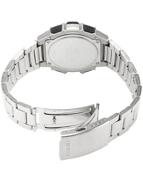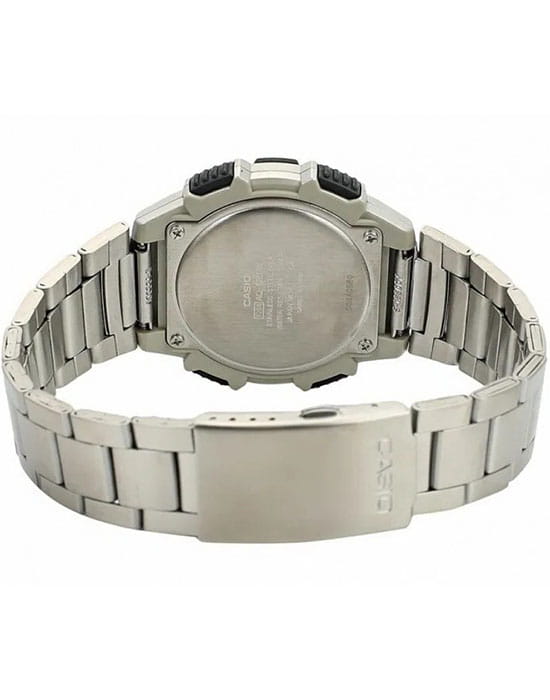 Японские спортивные мужские наручные часы AQ-S800WD-1ER с кварцевым механизмом. Оснащены функциями термометра, будильника, таймера, секундомера, мирового времени. Корпус - Пластиковый; Стекло - Пластик; Водозащита - 100 м. (WR 100); Материал ремешка - Нержавеющая сталь; Цвет ремешка - Серебристый; Цвет циферблата - Черный.