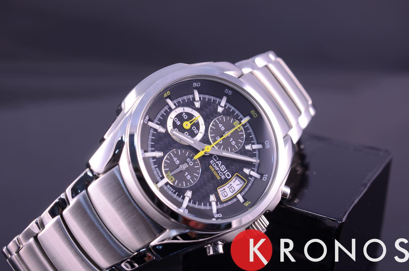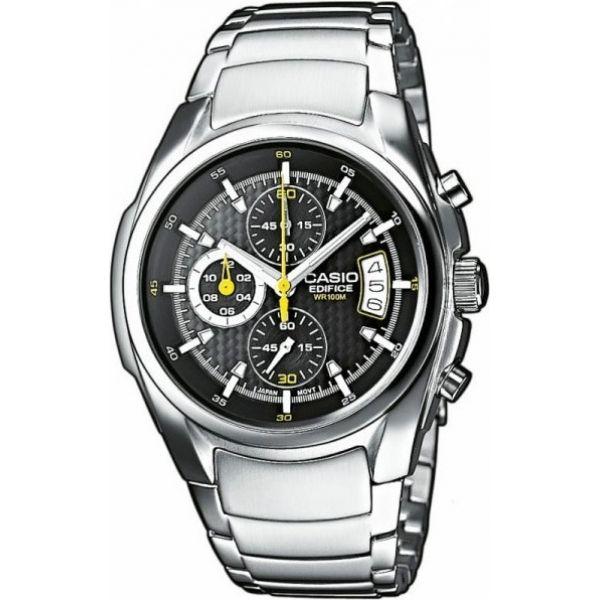 Мужские классические наручные часы Casio Edifice надежные и практичные. Кварцевый японский механизм Miyota. Точность хода не хуже -10 +15 сек./в месяц. Часы оснащены функцией хронографа. Циферблат черного цвета с контрастными индексами. Стрелки и индексы с светонакопительным нанесением. Корпус и браслет выполнены из высококачественной стали с антикоррозийными свойствами. Минеральное стекло устойчиво к появлению царапин. Водонепроницаемость 100М. В часах можно плавать. Степень водонепроницаемости не является величиной, эквивалентной функциональной рабочей глубине.