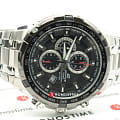 Стильная модель на вашем запястье будет привлекать внимание окружающих, оригинальное исполнение циферблата в сочетании с безупречным качеством используемых материалов даёт ошеломительный эффект. За точность хода +/- 30 секунд в месяц отвечает кварцевый механизм Miyota, батарейка рассчитана на 2 года работы. Минеральное стекло противостоит образованию царапин. Ударопрочный корпусУдаропрочный корпусМеханизм заключён в корпус, выполненный из современных материалов, устойчивых к ударам, механическим повреждениям и падению с высоты: инновационный пластик, карбон, нержавеющая сталь, титан. из нержавеющей стали 316L. Люминесцентная подсветкаЛюминесцентное покрытиеПозволяет считывать показания времени в темноте. Производители наносят на стрелки, часовые индексы, безель или поверхность циферблата светонакопительный состав, дающий холодное свечение.. Стальной браслет с предохранительной застёжкой. безельБезельВнешний ободок, закрепляющий стекло. В спортивных часах так называется поворотное кольцо с делениями на циферблате, выполняет роль таймера – замеряет отрезки времени на шкале. Неподвижный безель – элемент декора. Однонаправленно вращающийся безель на дайверских часах позволяет фиксировать моменты погружения и выныривания на поверхность. с IP-финишемIP-покрытиеМетод ионного напыления. Демонстрирует повышенную устойчивость к истиранию, окислению и химическим веществам. Под воздействием высокого давления и температуры около 1500°C молекулы металла надёжно соединяются с частицами корпуса часов.. Секундомер, хронографХронографФункция позволяет измерять отрезки времени с особой точностью: часы, минуты, секунды. Верным признаком хронографа является наличие на циферблате 3 дополнительных окошек-счётчиков., календарь, тахиметрТахиметрРазмеченная шкала, располагается на ободке или безеле часов. Тахиметр позволяет рассчитать скорость на определённом участке пути, расстояние измеряется в километрах или милях.. Габариты: 48,5 x 53,5 x 11,5 мм.