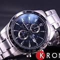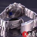 Высокоточный хронографХронографФункция позволяет измерять отрезки времени с особой точностью: часы, минуты, секунды. Верным признаком хронографа является наличие на циферблате 3 дополнительных окошек-счётчиков. в серебристо-чёрном исполнении понравится поклонникам автомобильной тематики. Тёмный циферблат с отдельными мини-счётчиками отличается крупной индикацией времени, позволяя без затруднений считывать показатели даже при мимолётном взгляде на дисплей. Кварцевый механизм получает энергию за счёт батарейки, рассчитанной на 2 года работы. Люминесцентная подсветкаЛюминесцентное покрытиеПозволяет считывать показания времени в темноте. Производители наносят на стрелки, часовые индексы, безель или поверхность циферблата светонакопительный состав, дающий холодное свечение.. Закалённое минеральное стекло. Водостойкость до 100 метров. Предохранительная застёжка. Секундомер, тахиметрТахиметрРазмеченная шкала, располагается на ободке или безеле часов. Тахиметр позволяет рассчитать скорость на определённом участке пути, расстояние измеряется в километрах или милях.. Габариты: 44,5 x 51,5 x 11,2 мм.