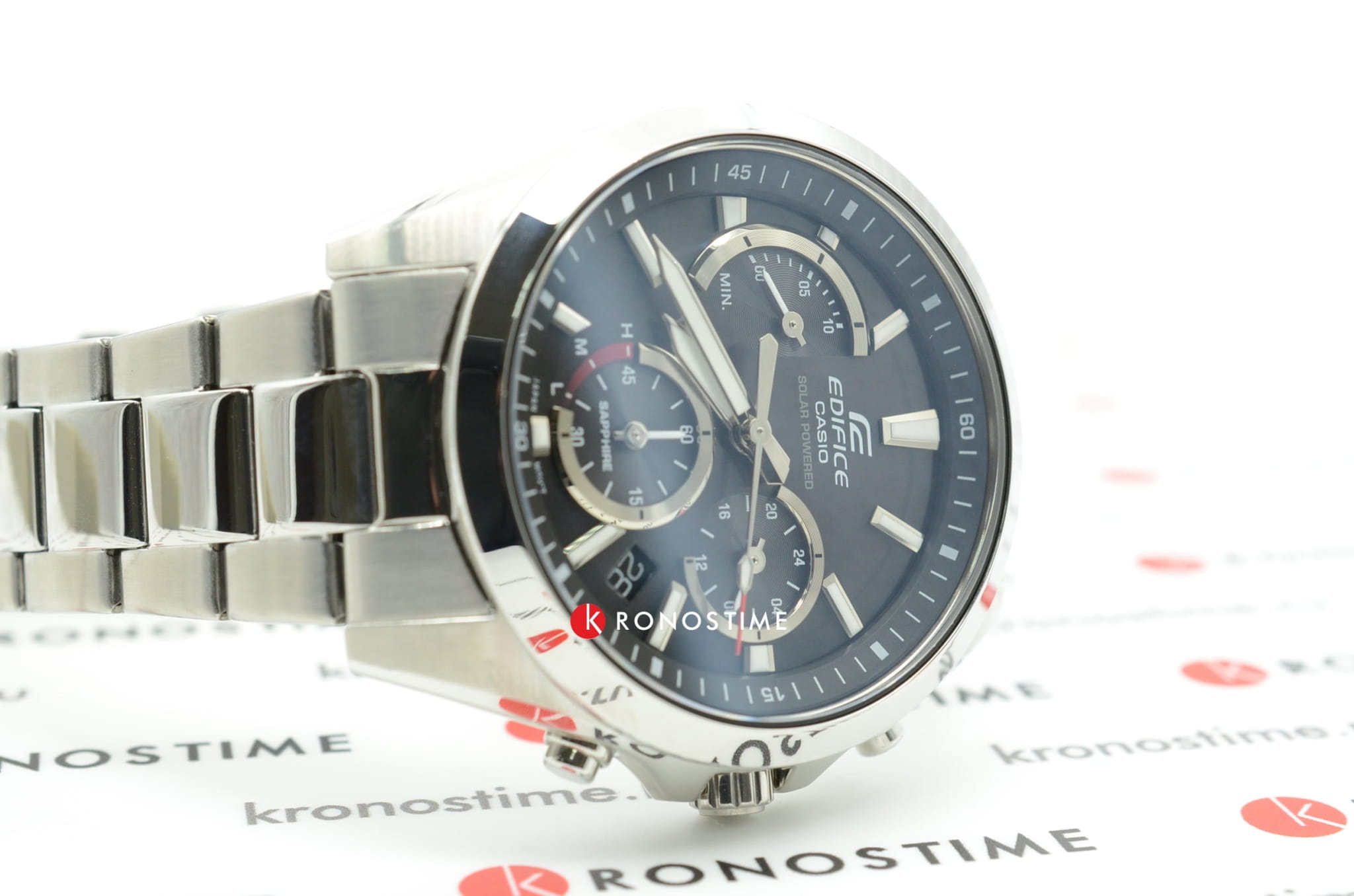 Чёрный циферблат с оригинальным размещением счётчиков имеет красные акценты, такой спортивный дизайн будет актуален в любой ситуации. Это наручные часы на солнечной батарее, основанные на технологии . Они дополнены браслетом из нержавеющей стали 316L с предохранительной застёжкой, обеспечивающей надёжную фиксацию на запястье. Кварцевый механизм с точностью хода -/+15 секунд в месяц. Сапфировое стекло. Люминесцентная подсветкаЛюминесцентное покрытиеПозволяет считывать показания времени в темноте. Производители наносят на стрелки, часовые индексы, безель или поверхность циферблата светонакопительный состав, дающий холодное свечение. стрелок. Апертура даты, функция хронографаХронографФункция позволяет измерять отрезки времени с особой точностью: часы, минуты, секунды. Верным признаком хронографа является наличие на циферблате 3 дополнительных окошек-счётчиков.. Габариты: 49,5 x 44,2 x 11,6 мм.