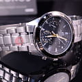 Наручные часы в чёрно-серебристой гамме - максимум комфорта и качества, модель станет главной особенностью вашего образа. Прослеживается автомобильная тематика, каждая деталь тщательно продумана. Кварцевый механизм с точностью хода +/- 20 секунд в месяц работает от батарейки, рассчитанной на 3 года работы. Минеральное стекло. Противоударный корпусУдаропрочный корпусМеханизм заключён в корпус, выполненный из современных материалов, устойчивых к ударам, механическим повреждениям и падению с высоты: инновационный пластик, карбон, нержавеющая сталь, титан. и браслет из нержавеющей стали 316L. Водостойкость до 10 бар. Чёрное IP-покрытиеIP-покрытиеМетод ионного напыления. Демонстрирует повышенную устойчивость к истиранию, окислению и химическим веществам. Под воздействием высокого давления и температуры около 1500°C молекулы металла надёжно соединяются с частицами корпуса часов.. Закручивающаяся задняя крышка. Люминесцентная подсветкаЛюминесцентное покрытиеПозволяет считывать показания времени в темноте. Производители наносят на стрелки, часовые индексы, безель или поверхность циферблата светонакопительный состав, дающий холодное свечение.. Секундомер, хронографХронографФункция позволяет измерять отрезки времени с особой точностью: часы, минуты, секунды. Верным признаком хронографа является наличие на циферблате 3 дополнительных окошек-счётчиков., окошко даты. Габариты: 43,8 x 48,5 x 12,1 мм.