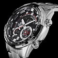 Стильный, мужские наручные часы Casio Edifice надежные и практичные. Кварцевый японский механизм Miyota. Точность хода не хуже -10 +15 сек./в месяц. Часы оснащены функциями: Секундомера с точностью показаний 1/100 сек и максимальным временем измерения - 24 час.Таймера обратного отсчета от 1мин до 24ч. Мировым временем/ Отображение текущего времени в основных городах и регионах мира. Термометр. Светодиодная автоматическая супер-подсветка. При движении руки дисплей освещается ярким цветным светом.Стрелки и индексы с светонакопительным нанесением. Корпус и браслет выполнены из нержавеющей стали. Минеральное стекло устойчиво к появлению царапин. Водонепроницаемость 100М. В часах можно плавать.