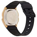 Электронные часы в чёрно-золотом исполнении напоминают первые модели от Casio благодаря винтажному 8-угольному ударопрочному корпусуУдаропрочный корпусМеханизм заключён в корпус, выполненный из современных материалов, устойчивых к ударам, механическим повреждениям и падению с высоты: инновационный пластик, карбон, нержавеющая сталь, титан., сделанному из надёжного пластика. Аксессуар с кварцевым механизмом работает от батарейки, характеризующейся высоким сроком службы - до 7 лет. Циферблат оснащён светодиодной микроподсветкойСветодиодная подсветкаСветодиодная или LED-подсветка обеспечивает появление яркого холодного свечения за счёт LED-элементов - маленьких лампочек. Они потребляют минимальное количество энергии, чаще всего можно встретить 1 светодиод, в нижней части циферблата., освещающей его сбоку. Органическое стекло легко полируется. Гибкий полимерный ремешок. Ежедневный будильник, секундомер, автоматический календарь, 12 и 24-х часовое отображение времени. Габариты: 33,2 x 38 x 8,5 мм.
