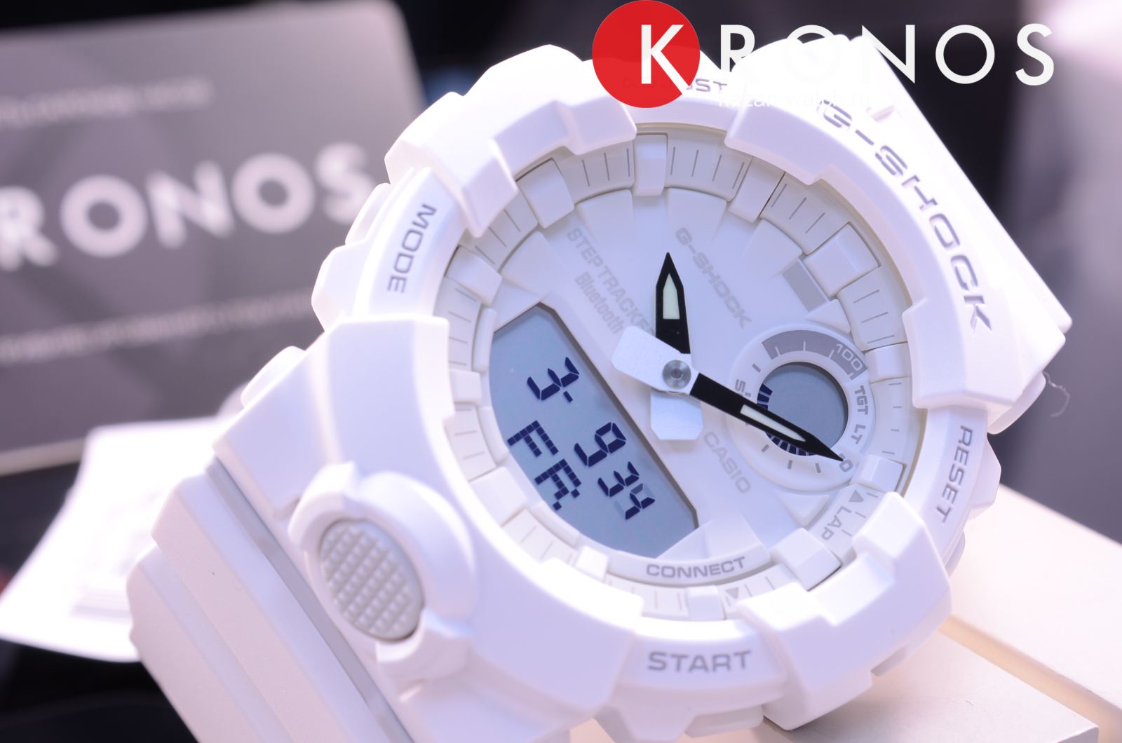 Белоснежные наручные часы с противоударным корпусомУдаропрочный корпусМеханизм заключён в корпус, выполненный из современных материалов, устойчивых к ударам, механическим повреждениям и падению с высоты: инновационный пластик, карбон, нержавеющая сталь, титан. сделаны из полимерного пластика, который устойчив к повреждениям и падению с высоты. Такой же материал был выбран и для гибкого ремешка, обеспечивающего комфортное ношение. Это первая модель из линейки G-Shock, оснащённая шагомером, теперь вы сможете в любое время следить за своей активностью. Японский кварцевый механизм работает от батарейки, срок её службы - 2 года. Минеральное стекло. Светодиодная подсветкаСветодиодная подсветкаСветодиодная или LED-подсветка обеспечивает появление яркого холодного свечения за счёт LED-элементов - маленьких лампочек. Они потребляют минимальное количество энергии, чаще всего можно встретить 1 светодиод, в нижней части циферблата. циферблата, люминесцентное покрытиеЛюминесцентное покрытиеПозволяет считывать показания времени в темноте. Производители наносят на стрелки, часовые индексы, безель или поверхность циферблата светонакопительный состав, дающий холодное свечение. стрелок. Bluetooth-синхронизацияBluetoothСовременная технология, позволяющая синхронизировать часы с телефоном и переносить данные. Часы с Bluetooth расширяют возможности вашего смартфона и делают его использование ещё более удобным., таймер с автоповтором, секундомер, автоматический календарь, будильник. Водостойкость при давлении 20 бар. Габариты: 54,1 x 48,6 x 15,5 мм.