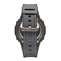 Оригинальный безельБезельВнешний ободок, закрепляющий стекло. В спортивных часах так называется поворотное кольцо с делениями на циферблате, выполняет роль таймера – замеряет отрезки времени на шкале. Неподвижный безель – элемент декора. Однонаправленно вращающийся безель на дайверских часах позволяет фиксировать моменты погружения и выныривания на поверхность. имеет форму октагона, часы являются современной интерпретацией модели DW-5000C. Чёрный циферблат дополнен контрастными серыми стрелками и часовыми индексами. Ударопрочный корпусУдаропрочный корпусМеханизм заключён в корпус, выполненный из современных материалов, устойчивых к ударам, механическим повреждениям и падению с высоты: инновационный пластик, карбон, нержавеющая сталь, титан. характеризуется повышенной устойчивостью к ударам и повреждениям за счёт технологии Carbon Core GuardCarbon Core Guard Новейшая структура корпуса, разработанная Casio. Полиуретановая пластина дополнительно усилена карбоновыми вставками, что придаёт специальную защиту от механических повреждений. Карбон отличается лёгкостью и прочностью.. Ремешок из полимерного материала с обновлённым креплением. Функция складывания стрелок для чтения показателей с дисплеев. Мировое времяМировое время Полезное часовое усложнение, отображающее время в основных городах и известных областях по всему миру, оно связано с часовыми поясами, удобно для путешественников и бизнесменов. , секундомер, 5 будильников, автоматический календарь. Срок службы батарейки – 3 года. Габариты: 48,5 x 45,4 x 11,8 мм.