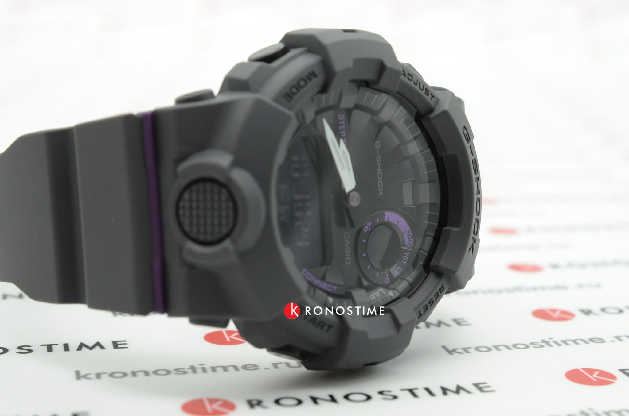Компактный циферблат дополнен контрастными элементами фиолетового цвета, что обеспечивает отличную читаемость показателей. Модель по достоинству оценят любители спорта и фитнеса, ведь широкий функционал позволяет значительно повысить продуктивность тренировки. Часы оснащены трекером активности (шагомером), мультифункциональным таймером, секундомером, а с помощью технологии BluetoothBluetoothСовременная технология, позволяющая синхронизировать часы с телефоном и переносить данные. Часы с Bluetooth расширяют возможности вашего смартфона и делают его использование ещё более удобным. все данные могут передаваться и анализироваться в специальном приложении для смартфонов G-Shock Connected App. Японский кварцевый механизм с точностью хода +/- 15 секунд в сутки. Срок службы батарейки - 2 года. Функция перемещения стрелок для просмотра показателей с мини-дисплеев. Противоударный корпусУдаропрочный корпусМеханизм заключён в корпус, выполненный из современных материалов, устойчивых к ударам, механическим повреждениям и падению с высоты: инновационный пластик, карбон, нержавеющая сталь, титан. и браслет из надёжного пластика. Светодиодная подсветкаСветодиодная подсветкаСветодиодная или LED-подсветка обеспечивает появление яркого холодного свечения за счёт LED-элементов - маленьких лампочек. Они потребляют минимальное количество энергии, чаще всего можно встретить 1 светодиод, в нижней части циферблата.. Минеральное стекло. Водонепроницаемость 200 метров. ХронографХронографФункция позволяет измерять отрезки времени с особой точностью: часы, минуты, секунды. Верным признаком хронографа является наличие на циферблате 3 дополнительных окошек-счётчиков., автоматический календарь, мировое времяМировое время Полезное часовое усложнение, отображающее время в основных городах и известных областях по всему миру, оно связано с часовыми поясами, удобно для путешественников и бизнесменов. . Габариты: 50,7 x 45,2 x 15,5 мм.