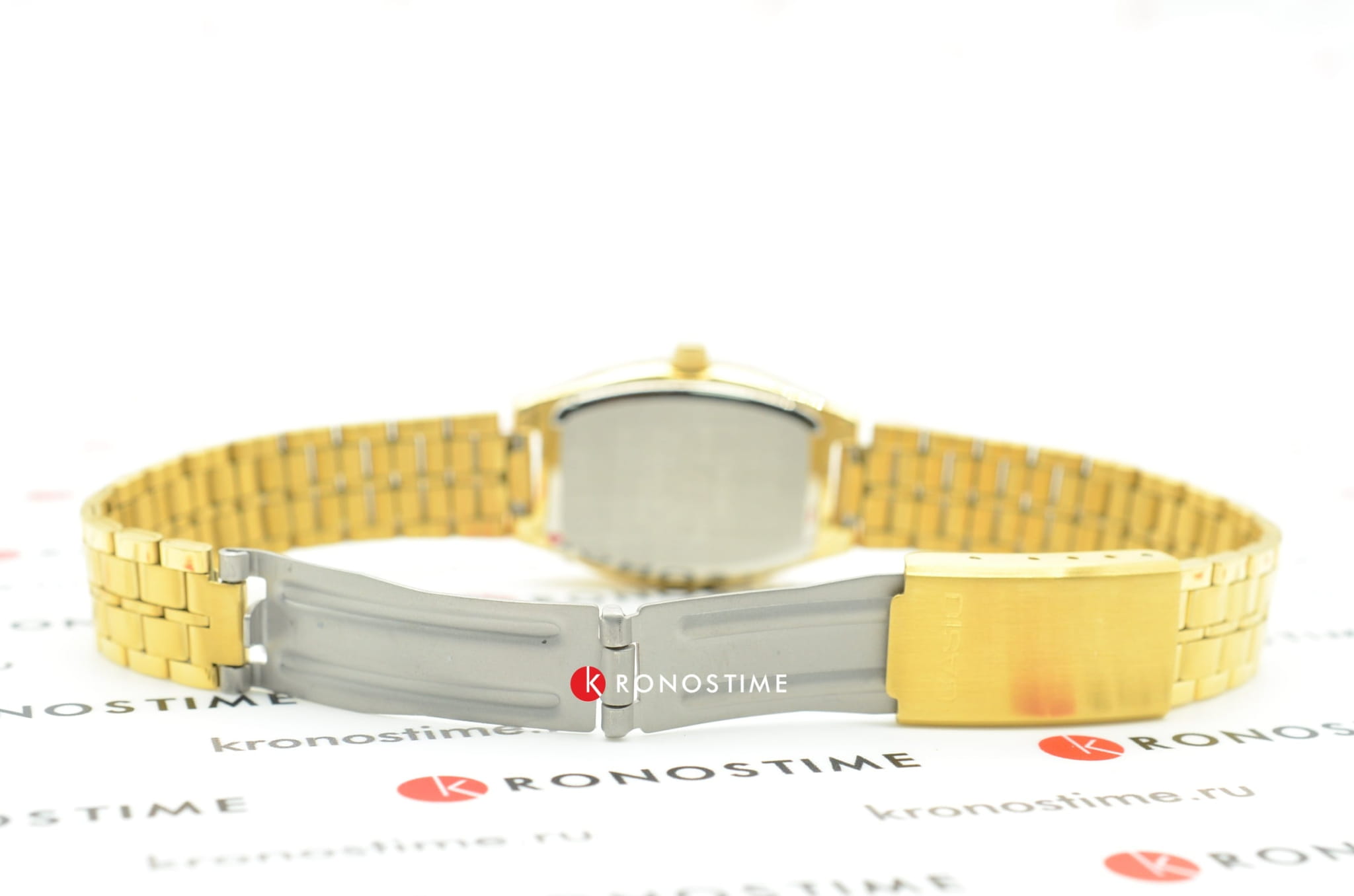 Модель от Casio выполнена в классическом стиле и призвана придавать эффектности и шарма своей обладательнице. Выпуклый по бокам корпус часов сделан из латуни. Яркий, золотой браслет с раскладывающейся застежкой сделан из нержавеющей стали с IP-покрытиемIP-покрытиеМетод ионного напыления. Демонстрирует повышенную устойчивость к истиранию, окислению и химическим веществам. Под воздействием высокого давления и температуры около 1500°C молекулы металла надёжно соединяются с частицами корпуса часов.. На белом циферблате аккуратно расположены штрихи и арабские цифры. Часы защищены от повреждений минеральным стеклом. Все детали прочно соединены между собой в единое целое. Кварцевые часы работают от батарейки. Вес аксессуара равен 48 граммам.