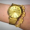 Классические женские наручные часы. Корпус и браслет выполнены из высокопрочной стали с IP покрытием. Круглый циферблат серебристого цвета с позолоченными индексами. Минеральное стекло, устойчивое к царапинам. Водонепроницаемость 3 ATM.