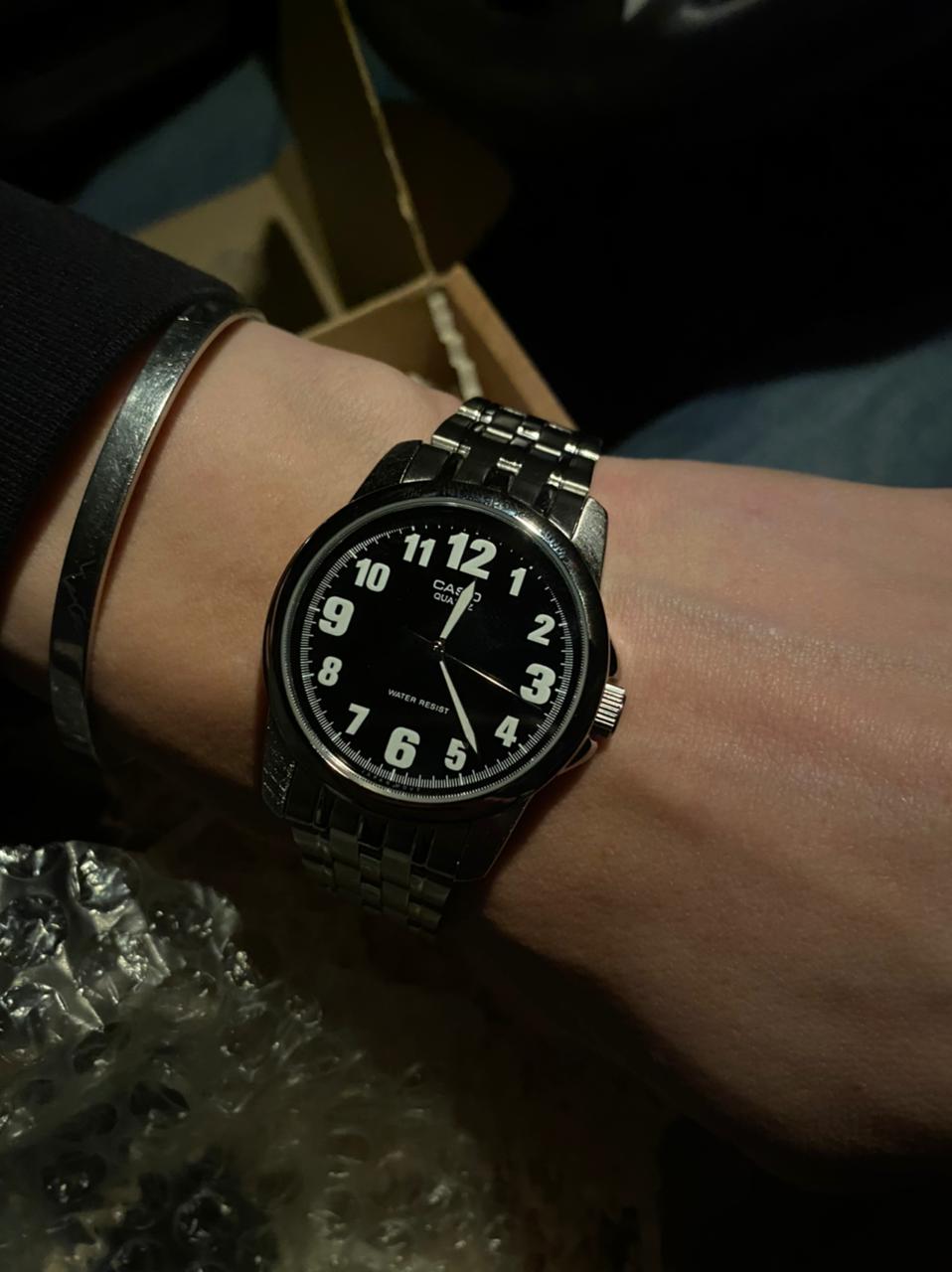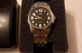 Сдержанный дизайн ориентирован на удобство и универсальность в ношении аксессуара. Благодаря крупным белым цифрам на черном циферблате, определить время не составит труда. Подсветка NeobriteПодсветка NeobriteИспользование светонакопительных составов на основе сульфида цинка или алюмината стронция, яркий свет можно наблюдать на протяжении 6-10 часов после «зарядки» часов около источника света. обеспечивает видимость показателей в темноте. Аккуратный латунный корпус надежно соединен с браслетом из нержавеющей стали. Раскладывающаяся застежка прочно обхватывает запястье и сводит к минимуму потерю аксессуара. Тип механизма - кварцевый. Батарейка служит 3 года. Вес аксессуара равен 91 граммам.