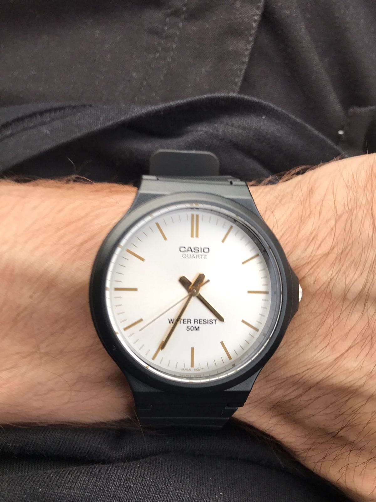 Часы на руке смотрятся очень приятно. Удобные в носке, очень лёгкие поэтому не ощущаются на руке, не обязательно туго затягивать ремень, сидят хорошо, не сползают. Подсветка в темноте хорошая.  Водостойкость достаточная для мытья рук и душа,  За свои деньги отличный выбор, стильные и надежные часы. Покупкой доволен.