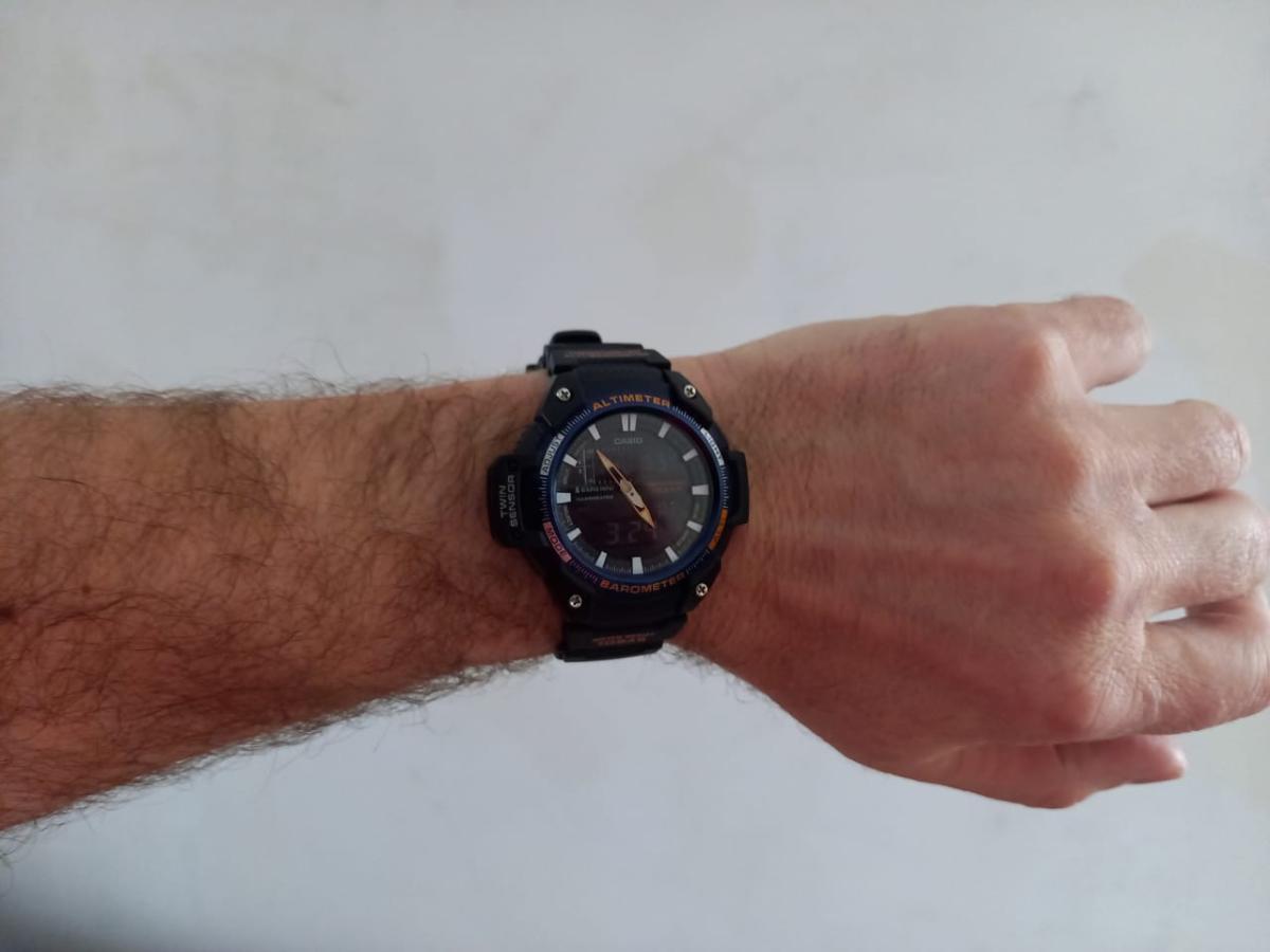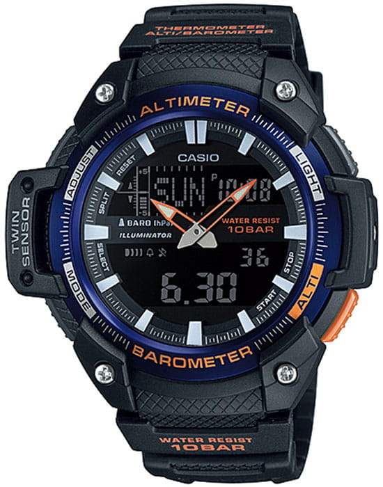 Спортивные мужские многофункциональные часы с аналогово-цифровым циферблатом черного цвета. Пластиковый корпус с алюминиевым безелем крепится на руке ремешком, изготовленным из пластика в черном цвете. Часы Casio SGW-450H-2B оснащены электролюминесцентной подсветкой на весь экран, высотомером, барометром, термометром и такими базовыми функциями, как секундомер, таймер и будильник. Корпус - Пластиковый; Стекло - Минеральное; Водозащита - 100 м. (WR 100); Материал ремешка - Пластиковый; Цвет ремешка - Черный; Цвет циферблата - Lcd.
