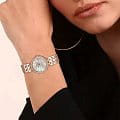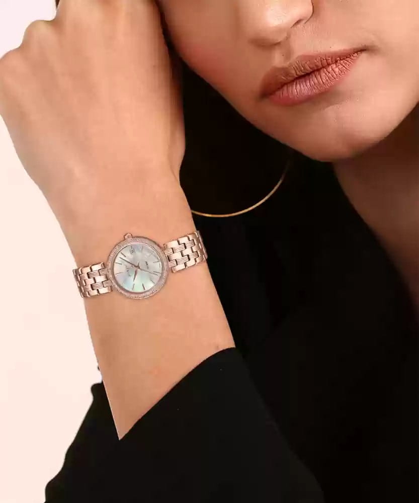Женские японские наручные часы на браслете Casio Sheen SHE-4060PG-4AUDF, кварцевый механизм с высокой точностью. Класс водозащиты: 50 метров, позволит защитить корпус от случайных брызг или капель дождя. Корпус часов изготовлены из нержавеющей стали с IP-покрытиемIP-покрытиеМетод ионного напыления. Демонстрирует повышенную устойчивость к истиранию, окислению и химическим веществам. Под воздействием высокого давления и температуры около 1500°C молекулы металла надёжно соединяются с частицами корпуса часов.. Минеральное стеклоМинеральное стеклоМинеральное стекло представляет собой искусственно выращенный минерал кварца. Такое стекло отличается особой устойчивостью к повреждениям и царапинам. Уступает по некоторым качествам сапфировому стеклу. устойчивое к мелким механическим повреждениям. БезельБезельВнешний ободок, закрепляющий стекло. В спортивных часах так называется поворотное кольцо с делениями на циферблате, выполняет роль таймера – замеряет отрезки времени на шкале. Неподвижный безель – элемент декора. Однонаправленно вращающийся безель на дайверских часах позволяет фиксировать моменты погружения и выныривания на поверхность. инкрустирован кристаллами. Окошко даты находится в положении 3 часа.