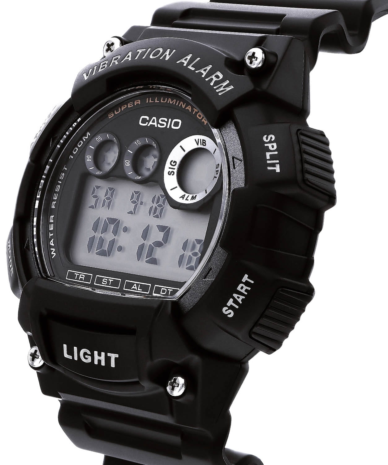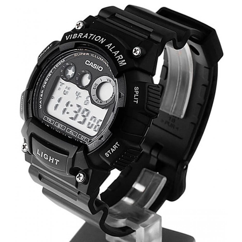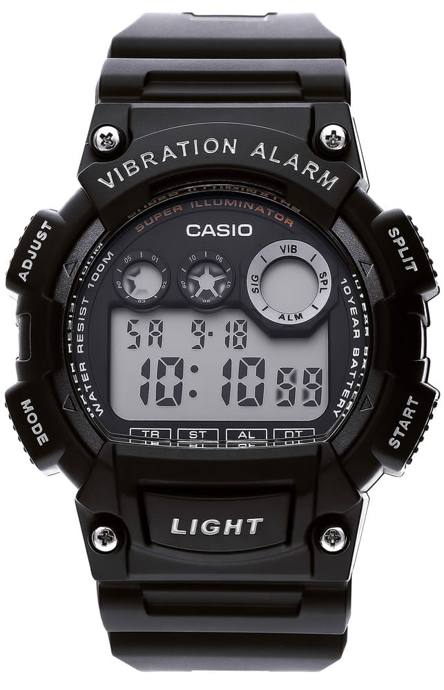 Спортивные японские мужские часы c хронографомХронографФункция позволяет измерять отрезки времени с особой точностью: часы, минуты, секунды. Верным признаком хронографа является наличие на циферблате 3 дополнительных окошек-счётчиков. Casio Standard Digital W-735H-1A, кварцевый механизм с высокой точностью. Класс водозащиты: 100 метров, позволит плавать, нырять и заниматься другими водными видами спорта. Корпус часов изготовлен из пластика. Пластиковый ремешок на стандартной застёжке. Циферблат подсвечивается светодиодом разных цветов. СекундомерСекундомерСекундоме́р — прибор, способный измерять интервалы времени с точностью до долей секунды. с точностью показаний 1/100с и временем измерения 24ч. Сплит-хронографХронографФункция позволяет измерять отрезки времени с особой точностью: часы, минуты, секунды. Верным признаком хронографа является наличие на циферблате 3 дополнительных окошек-счётчиков.. Таймер обратного отсчета от 1с до 24ч. Второй часовой поясВторой часовой поясФункция, позволяющая отображать время двух часовых поясов одновременно.. 12-ти и 24-х часовой формат времени. Функция включения/отключения звука. Светодиодная подсветкаСветодиодная подсветкаСветодиодная или LED-подсветка обеспечивает появление яркого холодного свечения за счёт LED-элементов - маленьких лампочек. Они потребляют минимальное количество энергии, чаще всего можно встретить 1 светодиод, в нижней части циферблата. и вибрационная индикация сигнала.