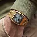 Японские мужские часы с хронографом Casio Vintage A500WGA-9D (A500WGA-9), кварцевый механизм с высокой точностью. Класс водозащиты: 30 метров, позволит защитить корпус от случайных брызг или капель дождя. Корпус часов изготовлен из пластика, золотистого цвета.