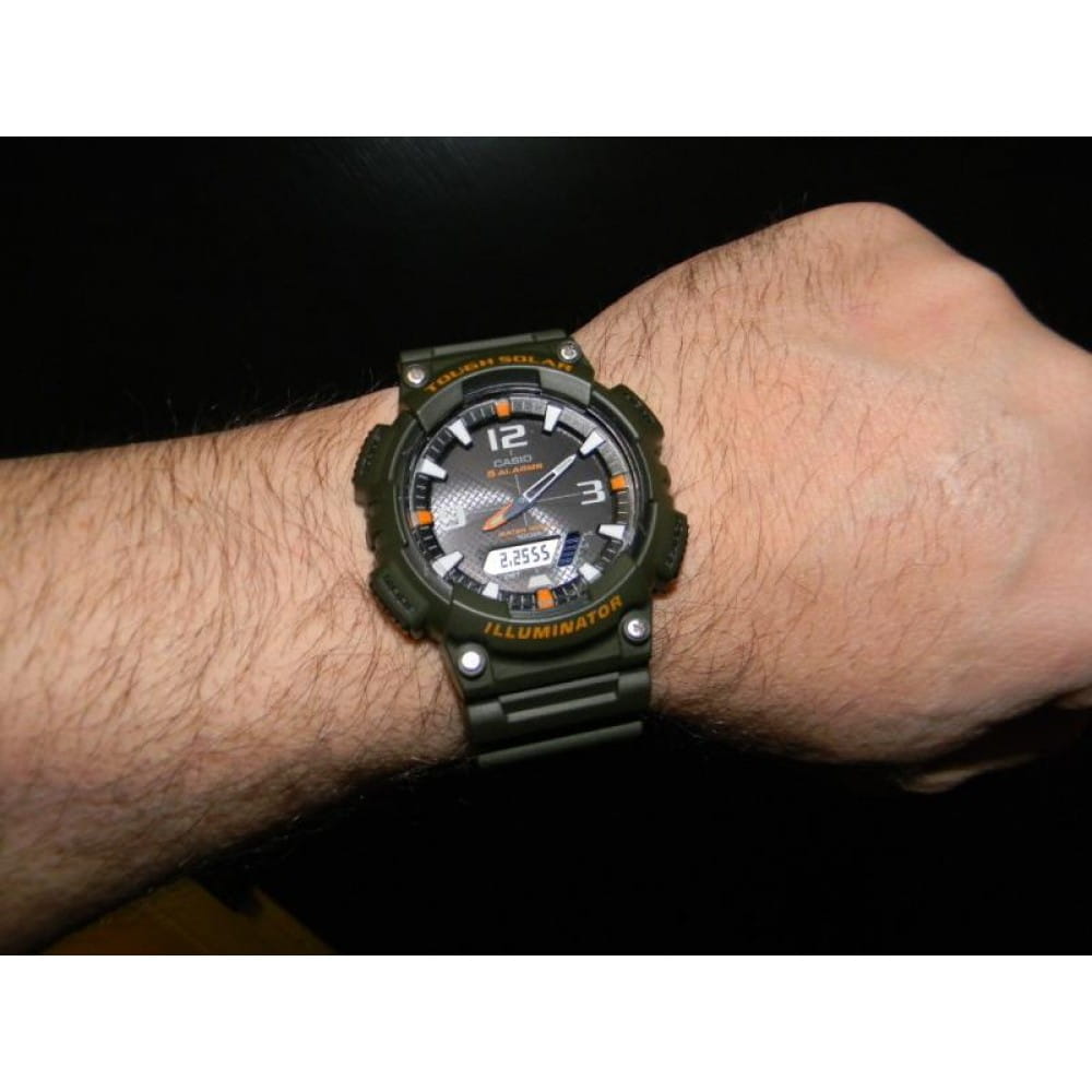 Многофункциональные и сдержанные часы в спортивном стиле станут идеальным выбором для современных мужчин. Analog-Digital Combination. LCD циферблат подсвечивается светодиодной подсветкойСветодиодная подсветкаСветодиодная или LED-подсветка обеспечивает появление яркого холодного свечения за счёт LED-элементов - маленьких лампочек. Они потребляют минимальное количество энергии, чаще всего можно встретить 1 светодиод, в нижней части циферблата.. Питание от солнечной энергии, индикатор заряда батареи. Функция автоматического сохранения энергии (отключает LCD дисплей). Время работы аккумулятора без подзарядки - 10 месяцев, при включенной функции сохранения энергии - 23 месяцев. CекундомерСекундомерСекундоме́р — прибор, способный измерять интервалы времени с точностью до долей секунды. с точностью показаний 1/100с и временем измерения 1ч. Два таймераТаймерОтсчитывает секунды в обратном направлении в заданном интервале времени. обратного отсчета времени от 5с до 100 мин с устанавливаемым количеством повторов от 1 до 10. Мировое времяМировое время Полезное часовое усложнение, отображающее время в основных городах и известных областях по всему миру, оно связано с часовыми поясами, удобно для путешественников и бизнесменов. . 12-ти и 24-х часовой формат времени. Шесть языков отображения дня недели: английский, португальский, испанский, французский, немецкий и итальянский. Функция включения/отключения звука. Класс водозащиты: 100 метров, позволит плавать, нырять и заниматься другими водными видами спорта. Пластиковый ремешок на стандартной застёжке.