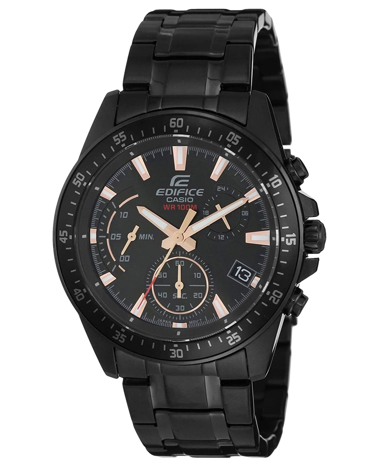 Японские мужские часы с хронографом Casio Edifice EFV-540DC-1BVUDF (EFV-540DC-1B), кварцевый механизм с высокой точностью. Класс водозащиты: 100 метров, позволит плавать, нырять и заниматься другими водными видами спорта. Корпус часов изготовлен из стали, черного цвета.