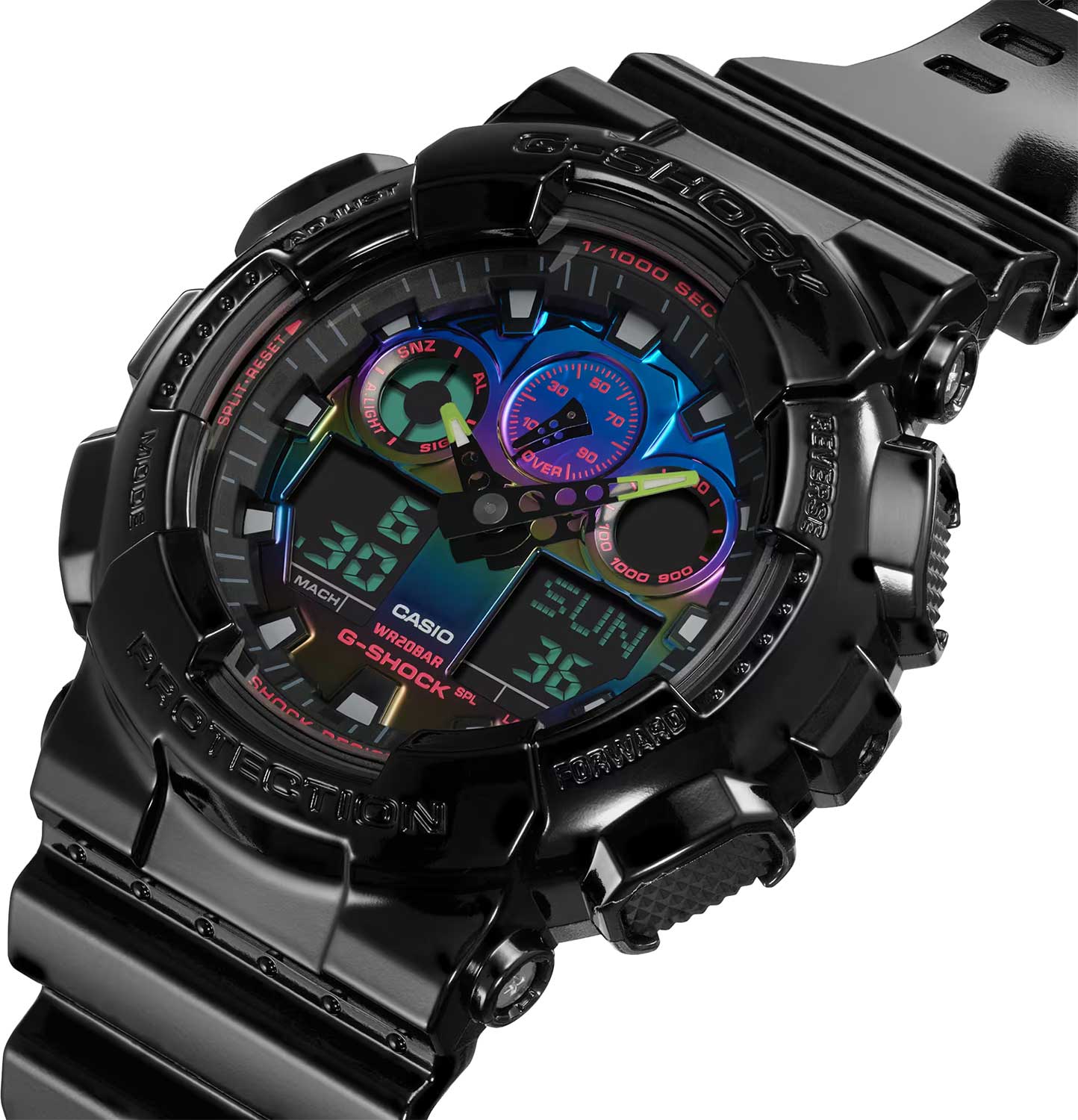 Японские мужские часы Casio G-Shock GA-100RGB-1ADR (GA-100RGB-1A) с хронографом
