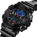 Мужские противоударные японские часы-хронографХронографФункция позволяет измерять отрезки времени с особой точностью: часы, минуты, секунды. Верным признаком хронографа является наличие на циферблате 3 дополнительных окошек-счётчиков. Casio G-Shock GA-100RGB-1A. Яркие, стильные и функциональные часы на удобном ремешке идеальны для современного ритма жизни. Модель вдохновлена киберспортом и виртуальным миром видеоигр. Яркие акценты напоминают цветную подсветку профессиональных геймерских девайсов. Противоударный корпус защищает механизм от ударов и вибрации. Защищены от магнитных полей. светодиоднаяСветодиодная подсветкаСветодиодная или LED-подсветка обеспечивает появление яркого холодного свечения за счёт LED-элементов - маленьких лампочек. Они потребляют минимальное количество энергии, чаще всего можно встретить 1 светодиод, в нижней части циферблата. автоподсветка - при повороте часов в сторону лица подсветка дисплея осуществляется автоматически. Настраиваемое послесвечение 1,5 или 3сек. Цвет подсветки: оранжевый. 12-ти и 24-х часовой формат времени. СекундомерСекундомерСекундоме́р — прибор, способный измерять интервалы времени с точностью до долей секунды. с точностью показаний 1/1000с и временем измерения 100ч. Расчет скорости по выбранной дистанции. Сплит-хронографСплит-хронографИспользуется для измерения продолжительности нескольких временных отрезков, начинающихся одновременно, а заканчивающихся в разное время.. ТаймерТаймерОтсчитывает секунды в обратном направлении в заданном интервале времени. обратного отсчета от 1мин до 24ч с автоповтором. Мировое время Мировое время Полезное часовое усложнение, отображающее время в основных городах и известных областях по всему миру, оно связано с часовыми поясами, удобно для путешественников и бизнесменов. – 48 городов (29 часовых поясов), всемирное координированное время (UTCUTCВсемирное кординационное время, не имеющее привязки к географическому положению Гринвича, основывается на атомном отсчёте времени. Регулировка времени осуществляется более точно, чем устаревшее GMT.