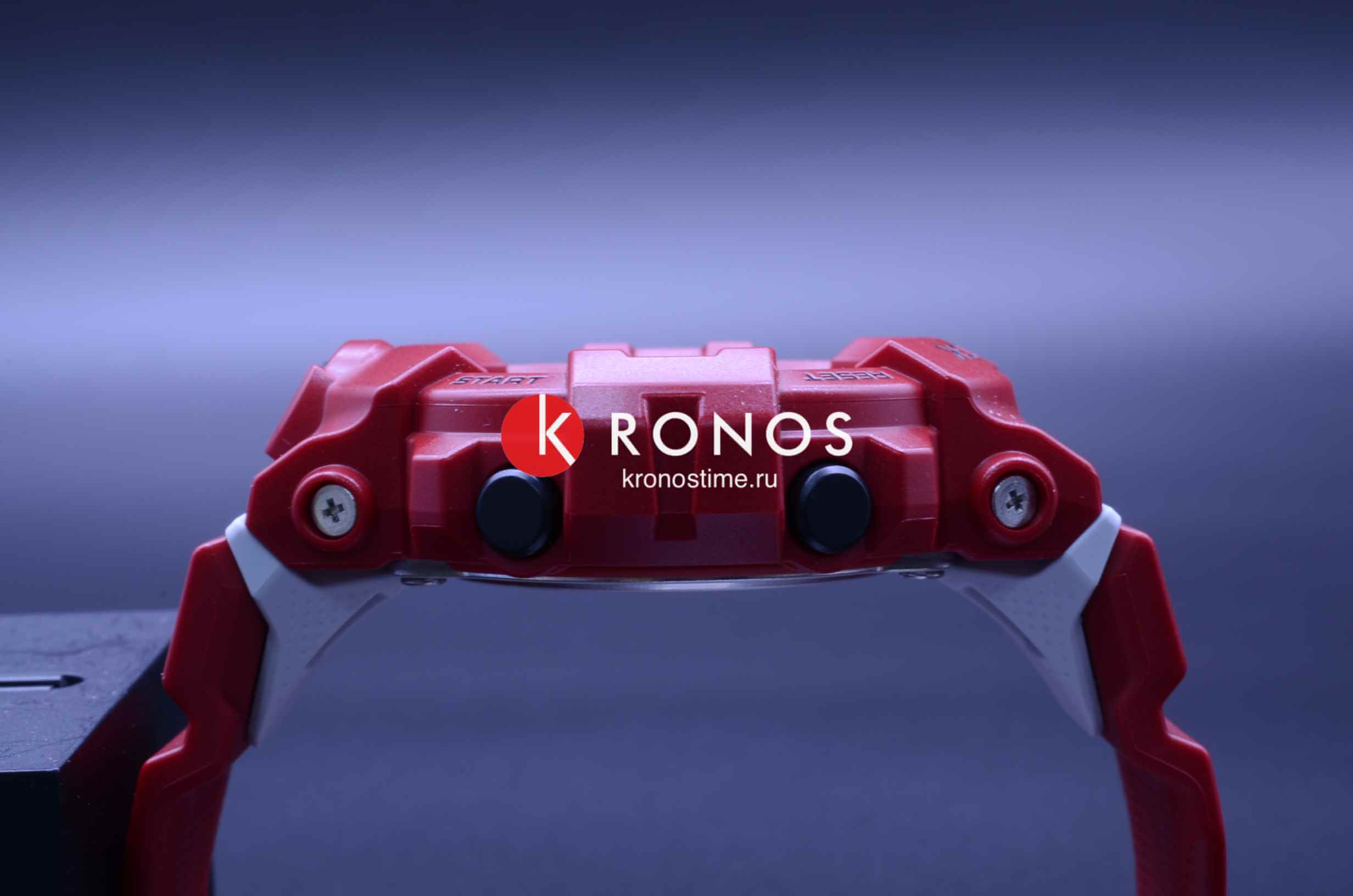 Внешний вид напоминает о боксерских перчатках. Ярко-красный аксессуар подходит для людей, которые следят за здоровьем и регулярно посещают тренировки. Этому способствует шагомер со звуковым напоминанием об отсутствии активности и технология BluetoothBluetoothСовременная технология, позволяющая синхронизировать часы с телефоном и переносить данные. Часы с Bluetooth расширяют возможности вашего смартфона и делают его использование ещё более удобным. с низким потреблением энергии. Часы синхронизируются с приложением G-SHOCK Connected Phone, в котором можно установить ежедневную норму шагов, рассчитать сожжённые калории. Японский кварцевый механизм получает питание от аккумулятора, рассчитанного на 2 года службы. Противоударный корпусУдаропрочный корпусМеханизм заключён в корпус, выполненный из современных материалов, устойчивых к ударам, механическим повреждениям и падению с высоты: инновационный пластик, карбон, нержавеющая сталь, титан. из пластика. Функция перемещения стрелок для лёгкого доступа к данным на цифровых дисплеях. Включение и выключение звука кнопок. Полимерный ремешок. Минеральное стекло. Водонепроницаемость 200 метров. Автоматическая светодиодная подсветкаСветодиодная подсветкаСветодиодная или LED-подсветка обеспечивает появление яркого холодного свечения за счёт LED-элементов - маленьких лампочек. Они потребляют минимальное количество энергии, чаще всего можно встретить 1 светодиод, в нижней части циферблата., стрелки с люминесцентным покрытием NeobriteПодсветка NeobriteИспользование светонакопительных составов на основе сульфида цинка или алюмината стронция, яркий свет можно наблюдать на протяжении 6-10 часов после «зарядки» часов около источника света.. Возможности: секундомер с памятью на 200 кругов, мировое времяМировое время Полезное часовое усложнение, отображающее время в основных городах и известных областях по всему миру, оно связано с часовыми поясами, удобно для путешественников и бизнесменов. , таймер обратного отсчёта, 5 будильников, календарь до 2099 года, хронографХронографФункция позволяет измерять отрезки времени с особой точностью: часы, минуты, секунды. Верным признаком хронографа является наличие на циферблате 3 дополнительных окошек-счётчиков.. Габариты: 54,1 x 48,6 x 15,5 мм.