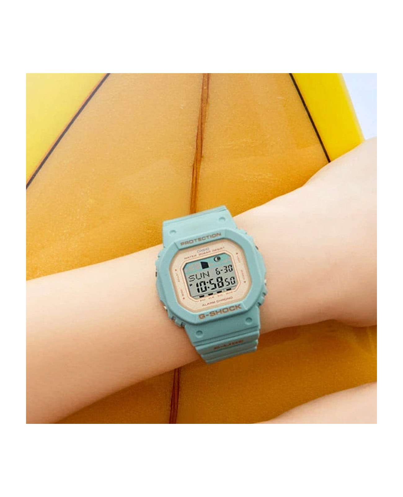Японские мужские часы-хронографХронографФункция позволяет измерять отрезки времени с особой точностью: часы, минуты, секунды. Верным признаком хронографа является наличие на циферблате 3 дополнительных окошек-счётчиков. Casio G-Shock GLX-S5600-3 из коллекции G-Shock. Винтажная модель в новой цветовой гамме корпуса и ремешка понравится поклонникам серфинга. G-Lide. Модель часов создана на базе GLX-5600. Минеральное стеклоМинеральное стеклоМинеральное стекло представляет собой искусственно выращенный минерал кварца. Такое стекло отличается особой устойчивостью к повреждениям и царапинам. Уступает по некоторым качествам сапфировому стеклу. устойчивое к появлению царапин, обладающее высокой прозрачностью. Ударопрочный корпусУдаропрочный корпусМеханизм заключён в корпус, выполненный из современных материалов, устойчивых к ударам, механическим повреждениям и падению с высоты: инновационный пластик, карбон, нержавеющая сталь, титан. защищает механизм от ударов и вибрации. Электролюминесцентная подсветкаЭлектролюминесцентная подсветкаЭлектролюминесцентная панель устанавливается под ЖК-экраном часов, при нажатии кнопки электричество преобразуется в свет за счёт подачи напряжения на атомы фосфора, такой тип подсветки позволяет освещать весь циферблат. освещает весь циферблат. Мировое времяМировое время Полезное часовое усложнение, отображающее время в основных городах и известных областях по всему миру, оно связано с часовыми поясами, удобно для путешественников и бизнесменов. – 48 городов (29 часовых поясов). СекундомерСекундомерСекундоме́р — прибор, способный измерять интервалы времени с точностью до долей секунды. с точностью измерения 1/100 секунды и измерением до 23 часов 59 минут 59,99 cек. ТаймерТаймерОтсчитывает секунды в обратном направлении в заданном интервале времени. обратного отсчета (диапазон времени 24 часа), автоматический календарь, 12/24 отображение времени. 3 будильникаБудильникБуди́льник — часы, в заданный момент времени подающие звуковой, световой и/или в редких случаях другой сигнал., один с функцией Snooze, ежечасный сигнал. Отображение возраста и фазы Луны. Графическое отображение сведений о приливах и отливах на заданную дату и время. Класс водозащиты: 200 метров, позволит плавать, нырять и заниматься другими водными видами спорта. Ремешок из полимерного материала на стандартной застежке.