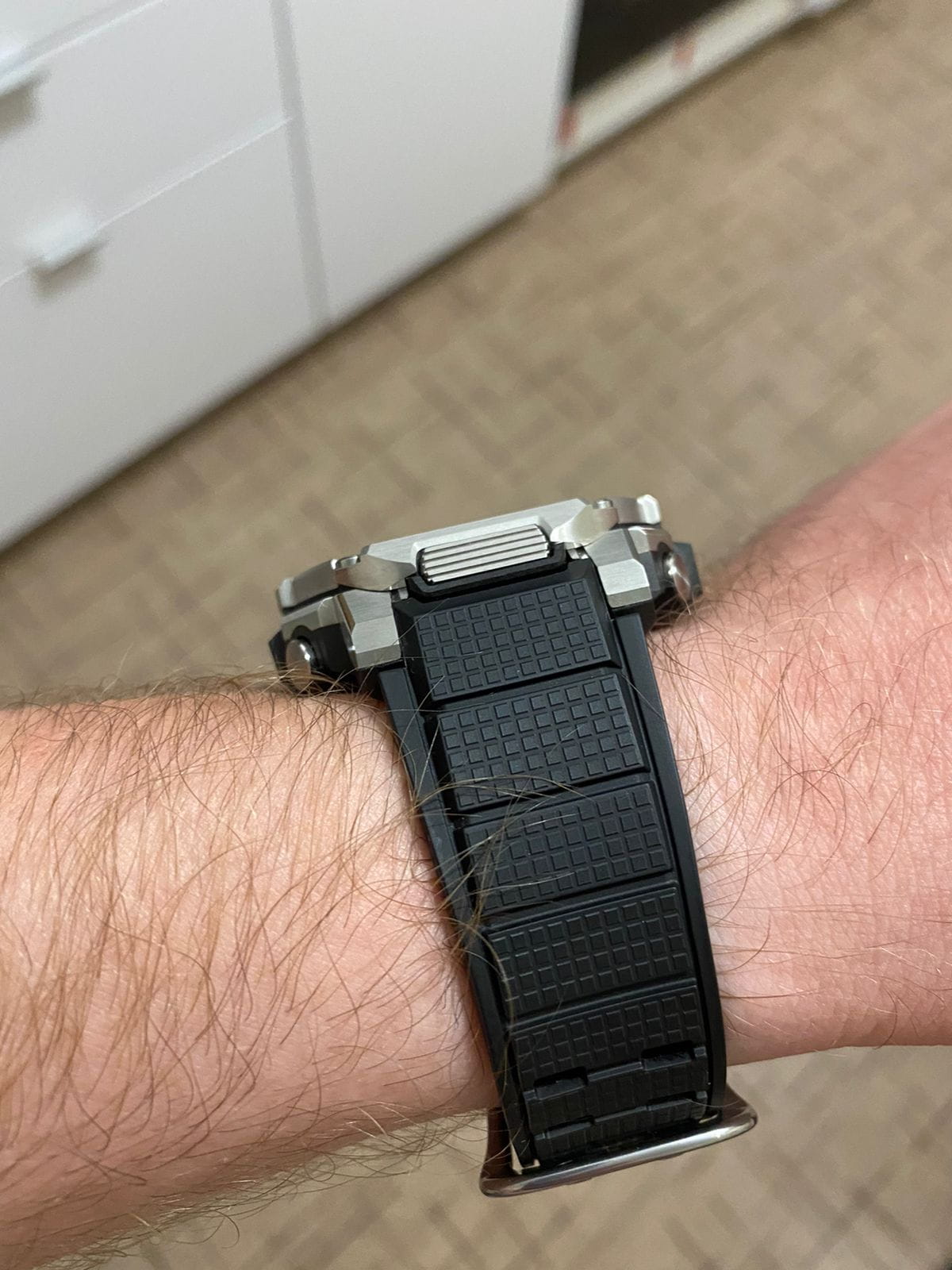 Корпус имеет структуру Carbon Core GuardCarbon Core Guard Новейшая структура корпуса, разработанная Casio. Полиуретановая пластина дополнительно усилена карбоновыми вставками, что придаёт специальную защиту от механических повреждений. Карбон отличается лёгкостью и прочностью., что говорит о повышенной ударопрочности. БезельБезельВнешний ободок, закрепляющий стекло. В спортивных часах так называется поворотное кольцо с делениями на циферблате, выполняет роль таймера – замеряет отрезки времени на шкале. Неподвижный безель – элемент декора. Однонаправленно вращающийся безель на дайверских часах позволяет фиксировать моменты погружения и выныривания на поверхность. изготовлен из стали 316L. Японский кварцевый механизм отличается высокой точностью хода 15 +/- секунд в месяц. Часы оснащены инновационной технологией , синхронизация со смартфоном происходит с помощью BluetoothBluetoothСовременная технология, позволяющая синхронизировать часы с телефоном и переносить данные. Часы с Bluetooth расширяют возможности вашего смартфона и делают его использование ещё более удобным.. Возможности: двойная автоматическая подсветка, мировое времяМировое время Полезное часовое усложнение, отображающее время в основных городах и известных областях по всему миру, оно связано с часовыми поясами, удобно для путешественников и бизнесменов. , будильник, хронографХронографФункция позволяет измерять отрезки времени с особой точностью: часы, минуты, секунды. Верным признаком хронографа является наличие на циферблате 3 дополнительных окошек-счётчиков., календарь, таймер.