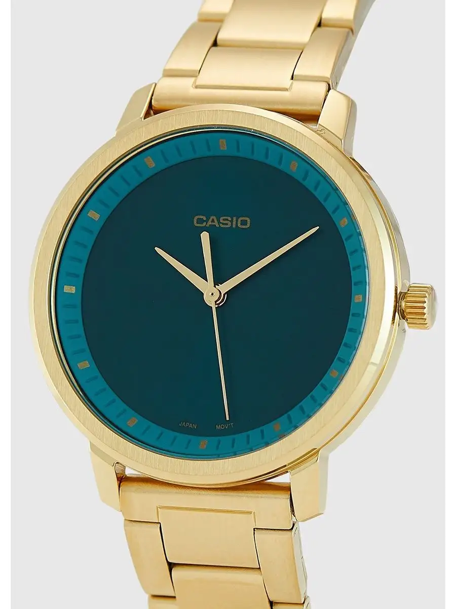 Японские женские часы Casio Collection LTP-B115G-3E с минеральным стекломМинеральное стеклоМинеральное стекло представляет собой искусственно выращенный минерал кварца. Такое стекло отличается особой устойчивостью к повреждениям и царапинам. Уступает по некоторым качествам сапфировому стеклу. изящно смотрятся на запястье, они привлекают классическим исполнением и правильной геометрией. Минималистичная модель станет отличным решением для любого случая: на работу, переговоры с деловыми партнёрами, прогулку с друзьями или праздничный вечер. Отсутствуют лишние детали, что позволяет часам быть актуальными на долгие годы. Корпус выполнен из нержавеющей стали с IP-покрытиемIP-покрытиеМетод ионного напыления. Демонстрирует повышенную устойчивость к истиранию, окислению и химическим веществам. Под воздействием высокого давления и температуры около 1500°C молекулы металла надёжно соединяются с частицами корпуса часов., отличающейся долговечностью и устойчивостью к повреждениям и царапинам. Браслет с раскладной застёжкойРаскладная застёжкаТакой тип застёжки используется только на браслетах из металла. Она никогда не раскрывается полностью, происходит разделение на 2 и более частей. Раскладывающая застёжка снизит вероятность потери часов к минимуму. с IP-покрытиемIP-покрытиеМетод ионного напыления. Демонстрирует повышенную устойчивость к истиранию, окислению и химическим веществам. Под воздействием высокого давления и температуры около 1500°C молекулы металла надёжно соединяются с частицами корпуса часов.. Модель комплектуется надёжным механизмом, точность хода которого составляет +/- 20 сек/мес. Водозащита: 50 метров, позволит защитить корпус от случайных брызг или капель дождя.