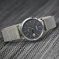 Серебристая гамма всегда останется актуальной, давая возможность экспериментировать с цветовыми сочетаниями в одежде. Аксессуар имеет стильный браслет миланского плетения с регулируемым креплением, который позволяет часам выглядеть как украшение. Кварцевый японский механизм с высокой точностью хода. Срок службы аккумулятора составляет 3 года. IP-покрытиеIP-покрытиеМетод ионного напыления. Демонстрирует повышенную устойчивость к истиранию, окислению и химическим веществам. Под воздействием высокого давления и температуры около 1500°C молекулы металла надёжно соединяются с частицами корпуса часов..