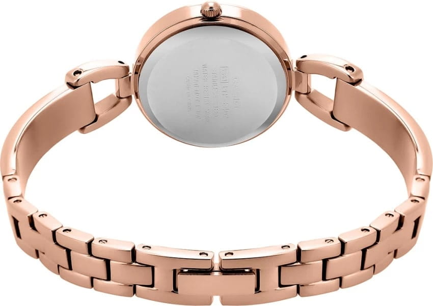 Японские женские часы из коллекции LTP с минеральным стекломМинеральное стеклоМинеральное стекло представляет собой искусственно выращенный минерал кварца. Такое стекло отличается особой устойчивостью к повреждениям и царапинам. Уступает по некоторым качествам сапфировому стеклу. изящно смотрятся на запястье, они привлекают классическим исполнением и правильной геометрией. Минималистичная модель станет отличным решением для любого случая: на работу, переговоры с деловыми партнёрами, прогулку с друзьями или праздничный вечер. Отсутствуют лишние детали, что позволяет часам быть актуальными на долгие годы. Корпус выполнен из нержавеющей стали с IP-покрытиемIP-покрытиеМетод ионного напыления. Демонстрирует повышенную устойчивость к истиранию, окислению и химическим веществам. Под воздействием высокого давления и температуры около 1500°C молекулы металла надёжно соединяются с частицами корпуса часов.. Браслет на ювелирной застёжке. Модель комплектуется надёжным механизмом, точность хода которого составляет +/- 20 сек/мес.