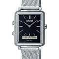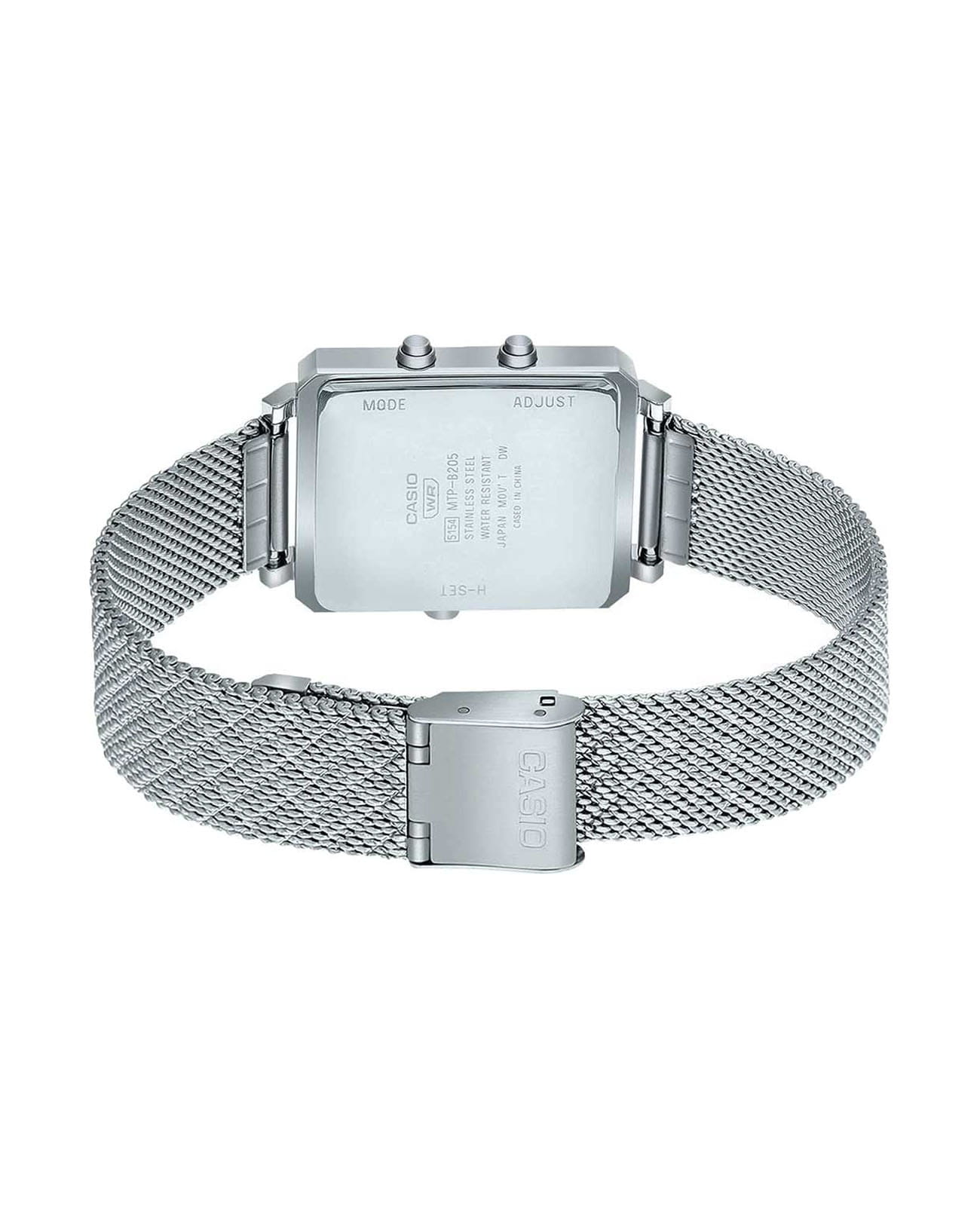 Японские мужские часы- хронографХронографФункция позволяет измерять отрезки времени с особой точностью: часы, минуты, секунды. Верным признаком хронографа является наличие на циферблате 3 дополнительных окошек-счётчиков. с минеральным стекломМинеральное стеклоМинеральное стекло представляет собой искусственно выращенный минерал кварца. Такое стекло отличается особой устойчивостью к повреждениям и царапинам. Уступает по некоторым качествам сапфировому стеклу. Casio Collection MTP-B205M-1EDF, кварцевый механизм с высокой точностью. Корпус часов изготовлен из стали. Мужские аналогово-цифровые часы. 12 и 24-часовой формат времени. СекундомерСекундомерСекундоме́р — прибор, способный измерять интервалы времени с точностью до долей секунды. с точностью показаний 1/100с и временем измерения 60мин. Второй часовой пояс. Циферблат с метками в виде штрихов. БудильникБудильникБуди́льник — часы, в заданный момент времени подающие звуковой, световой и/или в редких случаях другой сигнал., ежечасный сигнал. Батарея рассчитана на 3 года. Класс водозащиты: 50 метров, позволит защитить корпус от случайных брызг или капель дождя. Стальной браслет миланского плетения на раскладном замкеРаскладной замокДанный вариант застежки используется только на часах с металлическим браслетом. Отличительная особенность такого крепления в том, что длина браслета становится универсальной и вы можете самостоятельно отрегулировать нужный вам размер – застежка просто двигается по браслету часов..