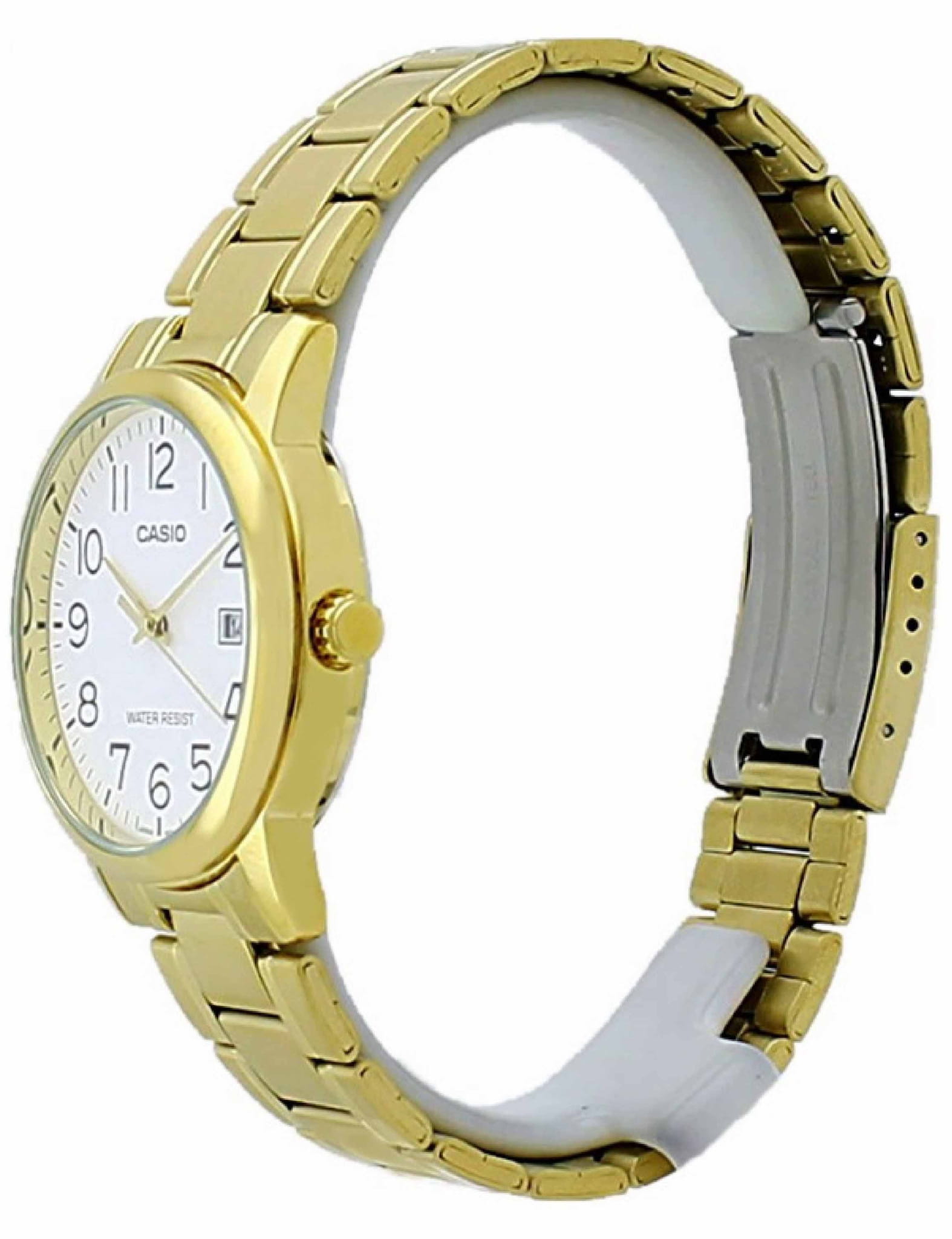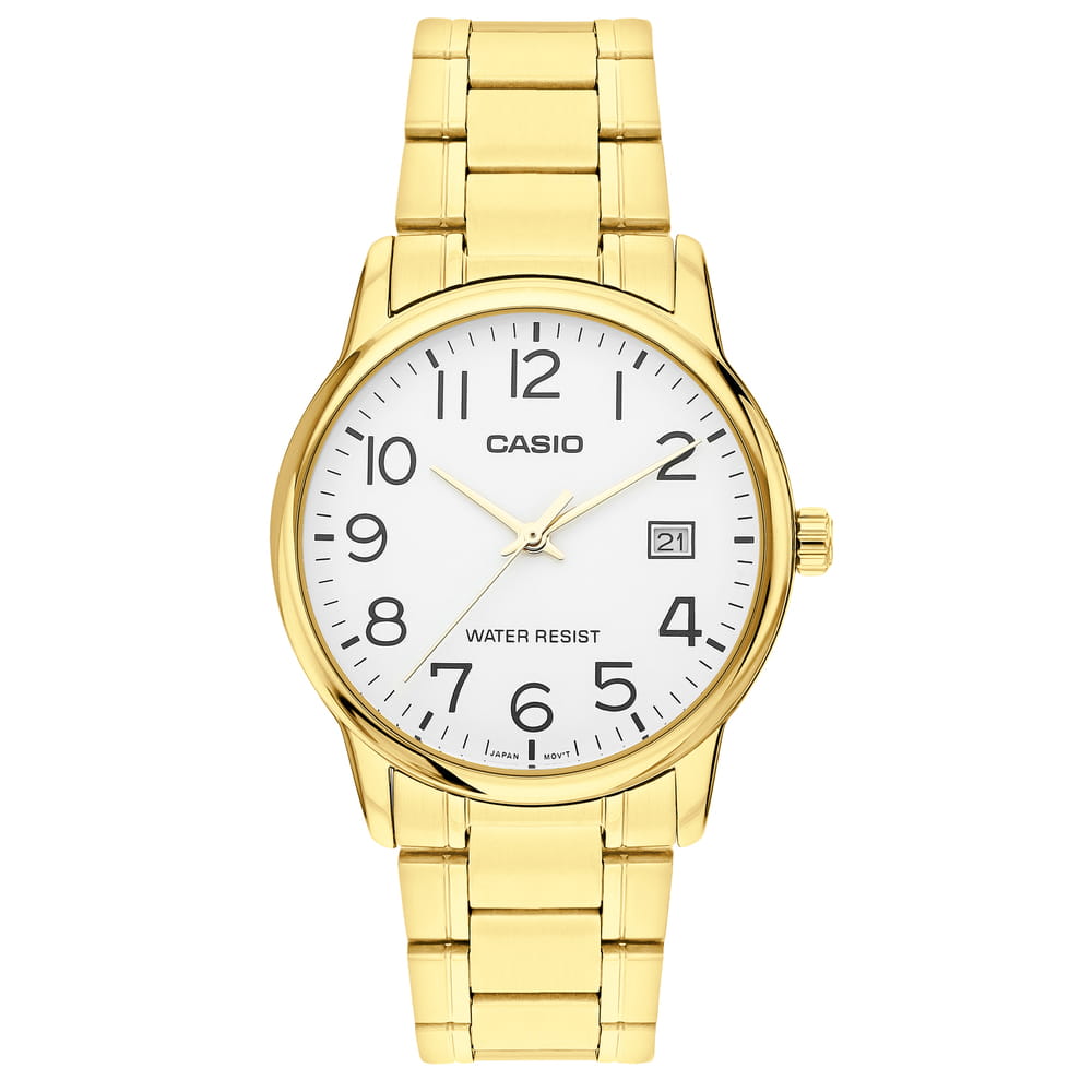 Японские мужские наручные часы с минеральным стекломМинеральное стеклоМинеральное стекло представляет собой искусственно выращенный минерал кварца. Такое стекло отличается особой устойчивостью к повреждениям и царапинам. Уступает по некоторым качествам сапфировому стеклу. Casio Collection MTP-V002G-7B2, кварцевый механизм с высокой точностью. Класс водозащиты: 30 метров, позволит защитить корпус от случайных брызг или капель дождя. Корпус часов изготовлен из стали с IP-покрытиемIP-покрытиеМетод ионного напыления. Демонстрирует повышенную устойчивость к истиранию, окислению и химическим веществам. Под воздействием высокого давления и температуры около 1500°C молекулы металла надёжно соединяются с частицами корпуса часов.. Стальной браслет на раскладной застёжкеРаскладная застёжкаТакой тип застёжки используется только на браслетах из металла. Она никогда не раскрывается полностью, происходит разделение на 2 и более частей. Раскладывающая застёжка снизит вероятность потери часов к минимуму. с IP-покрытиемIP-покрытиеМетод ионного напыления. Демонстрирует повышенную устойчивость к истиранию, окислению и химическим веществам. Под воздействием высокого давления и температуры около 1500°C молекулы металла надёжно соединяются с частицами корпуса часов.. Окошко даты находится в положении 3 часа.