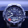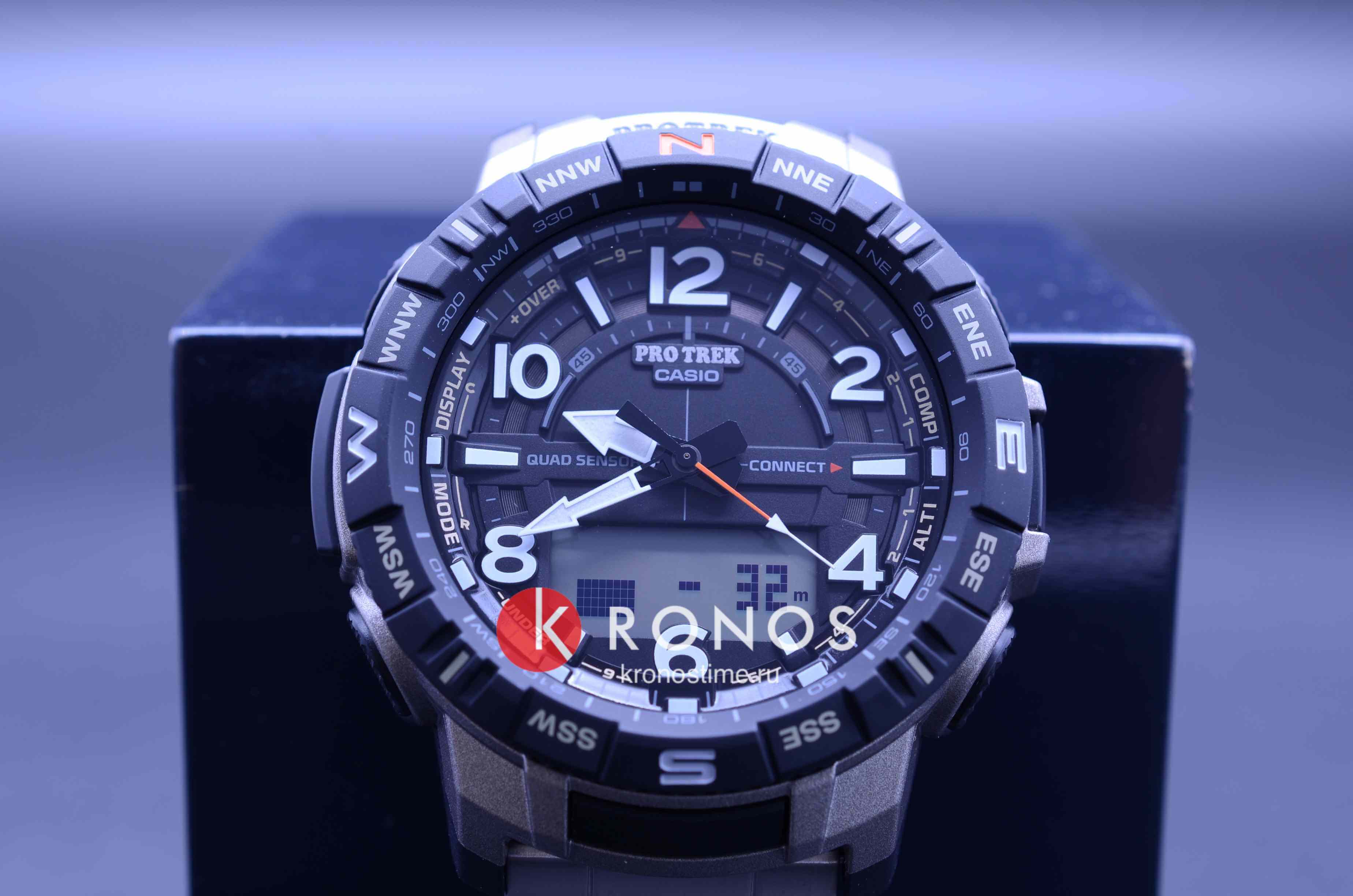 Аксессуар представлен в спортивном стиле, внимание привлекают угловатые детали и крупные габариты. Наручные часы в серебристо-чёрной расцветке оснащены множеством функций, необходимых для активного времяпрепровождения на природе, решения повседневных задач. Это термометр -10°C /+60°C, компас, барометр, график восхода и заката солнца, высотомер, мировое времяМировое время Полезное часовое усложнение, отображающее время в основных городах и известных областях по всему миру, оно связано с часовыми поясами, удобно для путешественников и бизнесменов. , шагомер, хронографХронографФункция позволяет измерять отрезки времени с особой точностью: часы, минуты, секунды. Верным признаком хронографа является наличие на циферблате 3 дополнительных окошек-счётчиков., будильник, календарь. Японский кварцевый механизм с точностью хода -/+15 секунд в месяц получает питание от батарейки, рассчитанной на 2-летний срок службы. Ударопрочный корпусУдаропрочный корпусМеханизм заключён в корпус, выполненный из современных материалов, устойчивых к ударам, механическим повреждениям и падению с высоты: инновационный пластик, карбон, нержавеющая сталь, титан. сделан из полимера, идеальным дополнением к нему стал титановый браслет с IP-покрытиемIP-покрытиеМетод ионного напыления. Демонстрирует повышенную устойчивость к истиранию, окислению и химическим веществам. Под воздействием высокого давления и температуры около 1500°C молекулы металла надёжно соединяются с частицами корпуса часов.. Электролюминесцентная подсветкаЭлектролюминесцентная подсветкаЭлектролюминесцентная панель устанавливается под ЖК-экраном часов, при нажатии кнопки электричество преобразуется в свет за счёт подачи напряжения на атомы фосфора, такой тип подсветки позволяет освещать весь циферблат. освещает дисплей, светодиодСветодиодная подсветкаСветодиодная или LED-подсветка обеспечивает появление яркого холодного свечения за счёт LED-элементов - маленьких лампочек. Они потребляют минимальное количество энергии, чаще всего можно встретить 1 светодиод, в нижней части циферблата. применяется для циферблата. Минеральное стекло защищает циферблат от повреждений, отличается устойчивостью к царапинам. Класс водостойкости – WR 100, часы подходят для плавания. Габариты: 57,5 x 50,8 x 15,8 мм.
