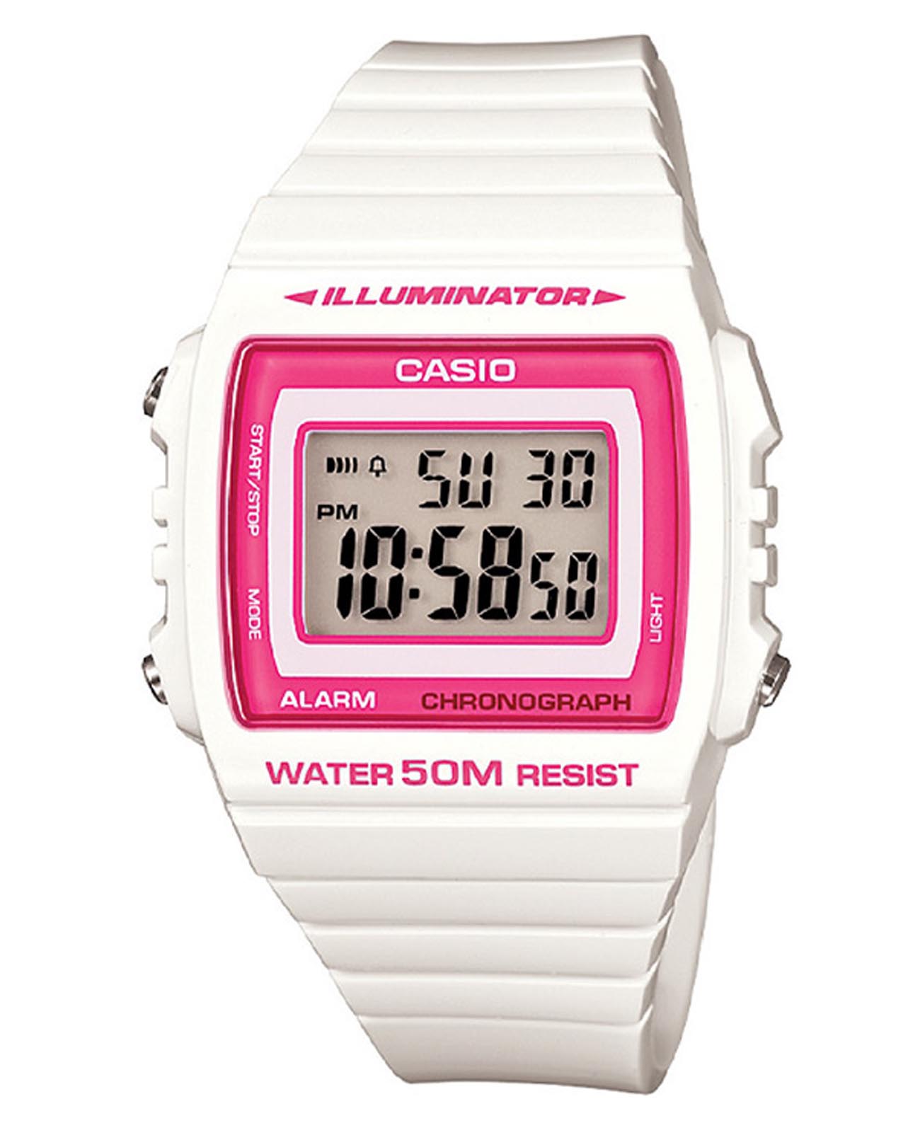 Спортивные японские часы-хронографХронографФункция позволяет измерять отрезки времени с особой точностью: часы, минуты, секунды. Верным признаком хронографа является наличие на циферблате 3 дополнительных окошек-счётчиков. Casio Collection W-215H-7A2, кварцевый механизм с высокой точностью, органическое стекло. Корпус часов изготовлен из стали и пластика. Светодиодная подсветкаСветодиодная подсветкаСветодиодная или LED-подсветка обеспечивает появление яркого холодного свечения за счёт LED-элементов - маленьких лампочек. Они потребляют минимальное количество энергии, чаще всего можно встретить 1 светодиод, в нижней части циферблата. освещает весь циферблат. 12-ти и 24-х часовой формат времени. СекундомерСекундомерСекундоме́р — прибор, способный измерять интервалы времени с точностью до долей секунды. с точностью показаний 1/100с и временем измерения 1ч. БудильникБудильникБуди́льник — часы, в заданный момент времени подающие звуковой, световой и/или в редких случаях другой сигнал., ежечасный сигнал. Класс водозащиты: 50 метров, позволит защитить корпус от случайных брызг или капель дождя. Ремешок из полимерного материала на стандартной застежке.