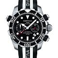 Спортивный аксессуар с классическими деталями дизайна имеет стильный полосатый ремешок из силикона, такой материал отличается гибкостью и водоотталкивающими свойствами. Модель комплектуется премиальным калибром ETA 7753 ValjouxValjouxПремиальный калибр от швейцарской компании ETA c уникальной отделкой механизма. Отличается увеличенным запасом хода от 45 до 60 часов, в зависимости от калибра, точность хода составляет +/- 5 секунд в сутки. с запасом хода 54 часов. Сапфировое стекло с антибликовой обработкой. Вращающийся безельБезельВнешний ободок, закрепляющий стекло. В спортивных часах так называется поворотное кольцо с делениями на циферблате, выполняет роль таймера – замеряет отрезки времени на шкале. Неподвижный безель – элемент декора. Однонаправленно вращающийся безель на дайверских часах позволяет фиксировать моменты погружения и выныривания на поверхность.. Водостойкость при давлении 20 бар. ХронографХронографФункция позволяет измерять отрезки времени с особой точностью: часы, минуты, секунды. Верным признаком хронографа является наличие на циферблате 3 дополнительных окошек-счётчиков., секундомер, апертура даты. Люминесцентная подсветкаЛюминесцентное покрытиеПозволяет считывать показания времени в темноте. Производители наносят на стрелки, часовые индексы, безель или поверхность циферблата светонакопительный состав, дающий холодное свечение.. Диаметр корпуса: 45 мм.