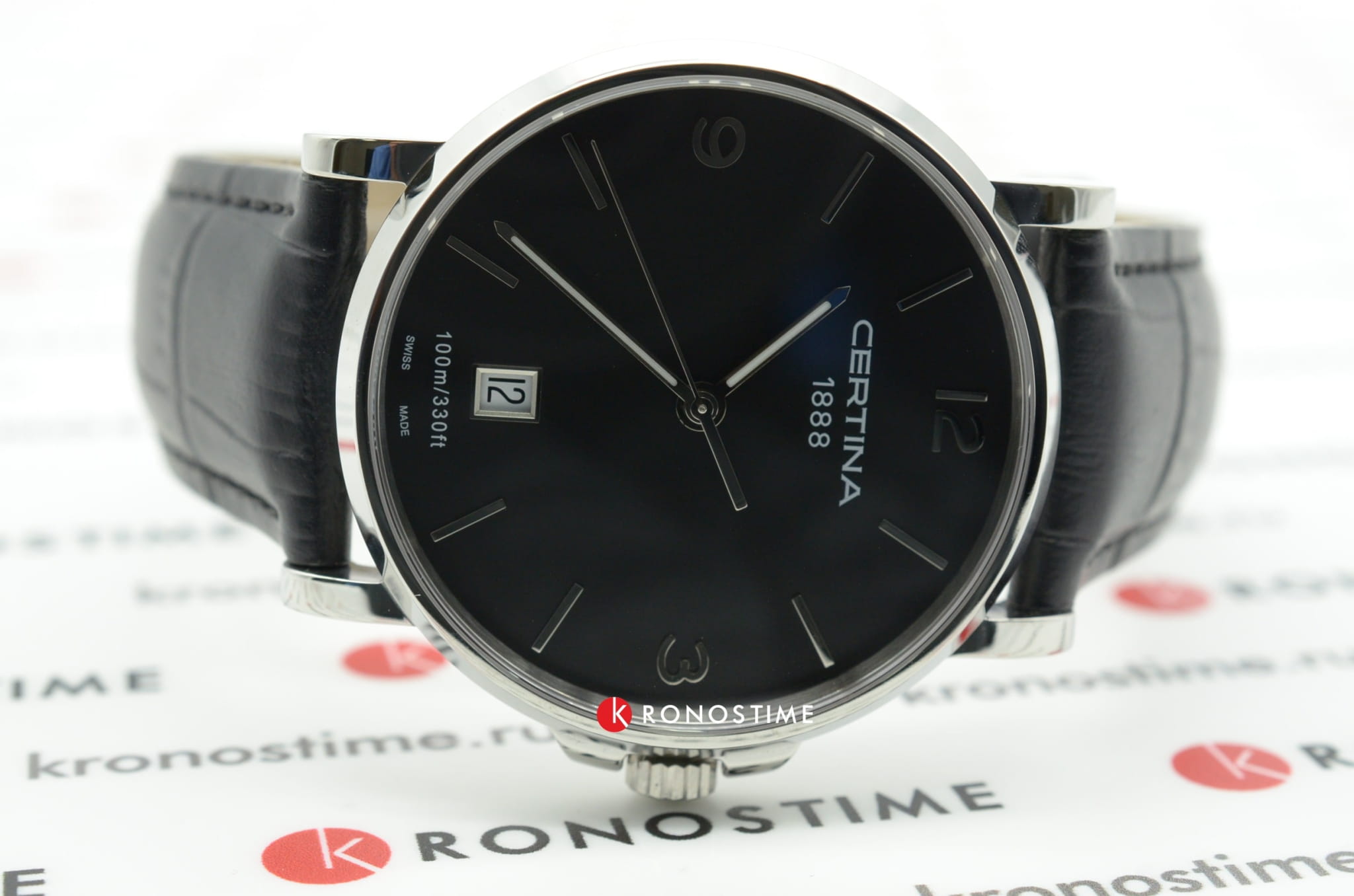 Брендовый аксессуар в чёрной цветовой гамме отличается безупречным качеством ввиду применения надёжных современных материалов: стекло из сапфира, устойчивое к появлению царапин, натуральная кожа для изготовления ремешка, прочный корпус из хирургической стали 316L. Швейцарский кварцевый калибр ETA F06.111 обеспечивает абсолютную точность показаний. Сохранение водонепроницаемости до 10 бар. Система DS ConceptDS ConceptDouble Security Concept, обозначает двойную надёжность и безупречную точность часов Certina. Двойная система защиты подразумевает обеспечение максимальной устойчивости к ударам и высоких показателей водонепроницаемости.. Отображение текущего числа, функция EOLEOLПредставляет собой систему, уведомляющую владельца часов о необходимости замены элемента питания. За 2 недели до полного разряда батарейки секундная стрелка перестаёт ходить чётко и начинает перепрыгивать на 3-4 деления.. Диаметр корпуса: 38 мм.