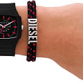 Мужские наручные часы Diesel DZ2191SET, кварцевый механизм с высокой точностью. Класс водозащиты: 30 метров, позволит защитить корпус от случайных брызг или капель дождя. Стрелки с люминесцентным покрытиемЛюминесцентное покрытиеПозволяет считывать показания времени в темноте. Производители наносят на стрелки, часовые индексы, безель или поверхность циферблата светонакопительный состав, дающий холодное свечение.. Класс водозащиты: 30 метров, позволит защитить корпус от случайных брызг или капель дождя. Корпус часов изготовлен из пластика. Рифленая заводная головка. Минеральное стеклоМинеральное стеклоМинеральное стекло представляет собой искусственно выращенный минерал кварца. Такое стекло отличается особой устойчивостью к повреждениям и царапинам. Уступает по некоторым качествам сапфировому стеклу., устойчивое к мелким механическим поврждениям. Силиконовый ремешок на стандартной застежке. В комплекте с часами идет фирменный браслет.