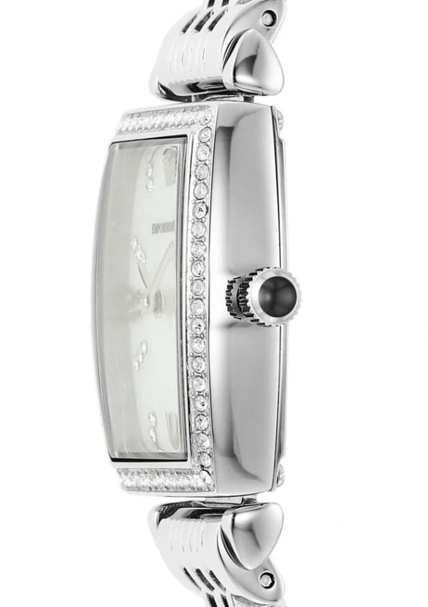 Женские кварцевые часы Emporio Armani из серии Gianni T-Bar сочетают классический дизайн и высокую надёжность. Корпус выполнен из нержавеющей стали серебристого цвета и защищён минеральным стекломМинеральное стеклоМинеральное стекло представляет собой искусственно выращенный минерал кварца. Такое стекло отличается особой устойчивостью к повреждениям и царапинам. Уступает по некоторым качествам сапфировому стеклу.. Циферблат прямоугольной формы в серебристом цвете оформлен римскими цифрами, придающими модели элегантный и утончённый вид. Браслет из нержавеющей стали фиксируется на застёжке «бабочка» с кнопкамиЗастёжка "бабочка"Такой вид застёжки дополняется предохранителями, помогающими избежать случайного раскрытия браслета. Обладают изящным исполнением. , обеспечивая удобство и надёжность ношения. Часы оснащены японским кварцевым механизмом, гарантирующим точное отсчёт времени. Водонепроницаемость составляет 30 WR, что позволяет использовать их в повседневных условиях, защищая от случайных брызг и капель дождя. Модель подчёркивает женственность и стиль, идеально дополняя как повседневный, так и вечерний образ.