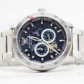 Итальянские мужские часы с Emporio Armani Mario AR60052, механический механизм (автоматический калибр) с высокой точностью. Класс водозащиты: 50 метров, позволит защитить корпус от случайных брызг или капель дождя. Корпус и браслет часов изготовлены из стали. Браслет с застёжкой-бабочкой с кнопкамиЗастёжка "бабочка"Такой вид застёжки дополняется предохранителями, помогающими избежать случайного раскрытия браслета. Обладают изящным исполнением. . На безелеБезельВнешний ободок, закрепляющий стекло. В спортивных часах так называется поворотное кольцо с делениями на циферблате, выполняет роль таймера – замеряет отрезки времени на шкале. Неподвижный безель – элемент декора. Однонаправленно вращающийся безель на дайверских часах позволяет фиксировать моменты погружения и выныривания на поверхность. расположилась шкала тахиметраТахиметрРазмеченная шкала, располагается на ободке или безеле часов. Тахиметр позволяет рассчитать скорость на определённом участке пути, расстояние измеряется в километрах или милях..