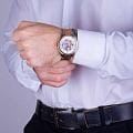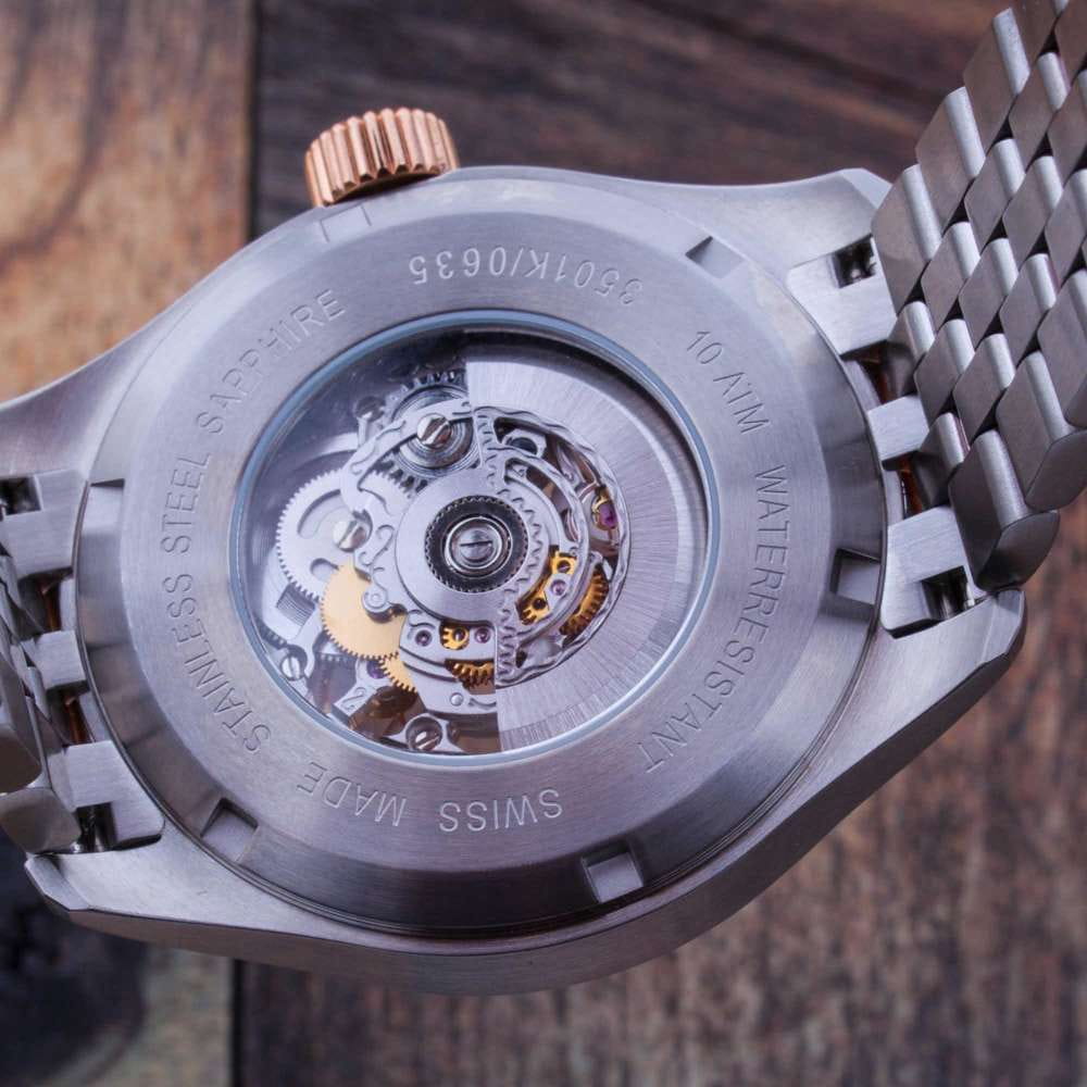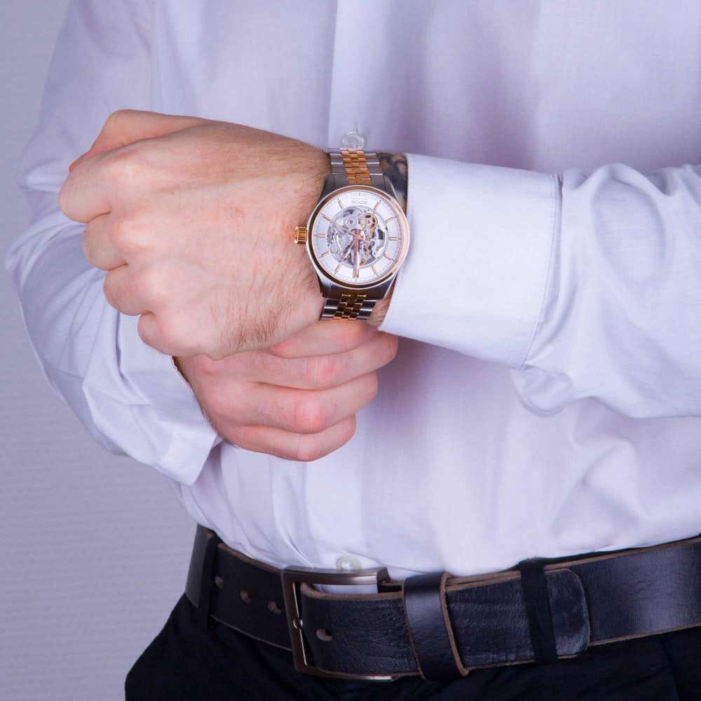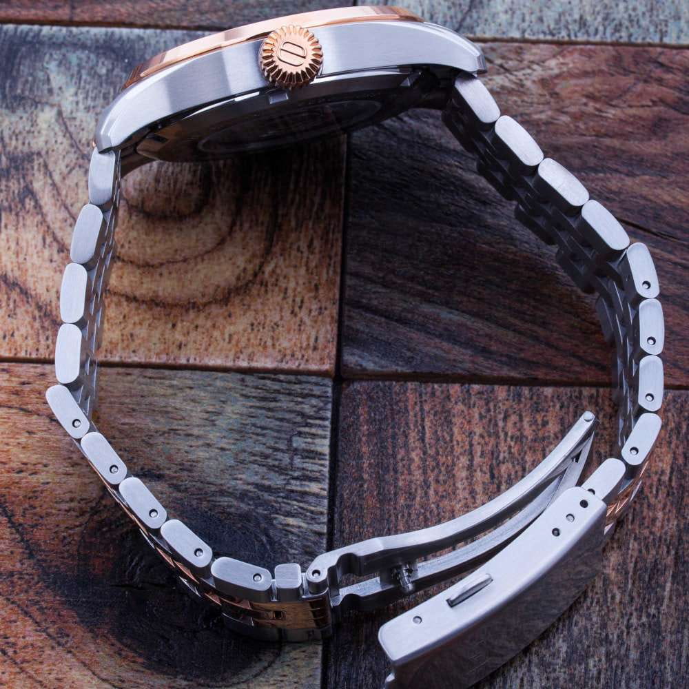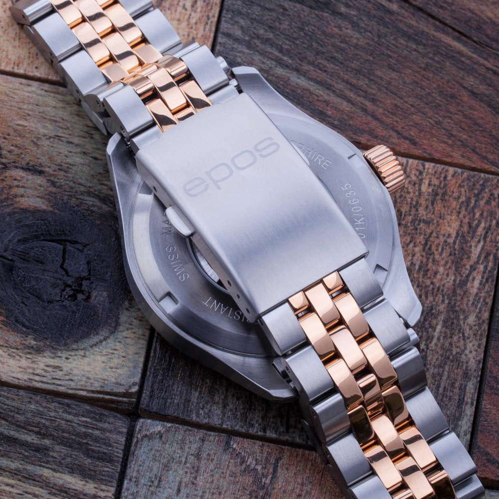 Мужские механические часы с автоподзаводом Epos 3501.135.34.18.44 из коллекции Passion — воплощение швейцарского мастерства и элегантного дизайна. Круглый корпус размером 41 мм из нержавеющей стали 316L. БезельБезельВнешний ободок, закрепляющий стекло. В спортивных часах так называется поворотное кольцо с делениями на циферблате, выполняет роль таймера – замеряет отрезки времени на шкале. Неподвижный безель – элемент декора. Однонаправленно вращающийся безель на дайверских часах позволяет фиксировать моменты погружения и выныривания на поверхность. с PVD-покрытиемPVDУльтратонкое покрытие наносится в технике вакуумного напыления, сочетает в себе нитрид титана особой прочности со слоем золота или оксида хрома. Несёт в себе декоративную или защитную функцию. цвета розового золота. Циферблат — серебристый с солнечной текстурой Sunray и накладными штрихами. Стекло — сапфировоеСапфировое стеклоПрочный и надёжный материал из кристалла сапфира синтетического происхождения, характеризующийся особой твёрдостью и устойчивостью к царапинам и повреждениям.. Стрелки и метки с люминесцентным покрытиемЛюминесцентное покрытиеПозволяет считывать показания времени в темноте. Производители наносят на стрелки, часовые индексы, безель или поверхность циферблата светонакопительный состав, дающий холодное свечение.. Механизм — швейцарский Sellita SW 200 (26 камней, 28 800 пк/ч, запас хода 38 часов), с функцией stop-second. Водонепроницаемость 100 м. Браслет — стальной 316L с частичным PVD-покрытиемPVDУльтратонкое покрытие наносится в технике вакуумного напыления, сочетает в себе нитрид титана особой прочности со слоем золота или оксида хрома. Несёт в себе декоративную или защитную функцию. на раскладной застёжкеРаскладная застёжкаТакой тип застёжки используется только на браслетах из металла. Она никогда не раскрывается полностью, происходит разделение на 2 и более частей. Раскладывающая застёжка снизит вероятность потери часов к минимуму.. Идеальный выбор для тех, кто ценит швейцарское качество и утончённый классический стиль.