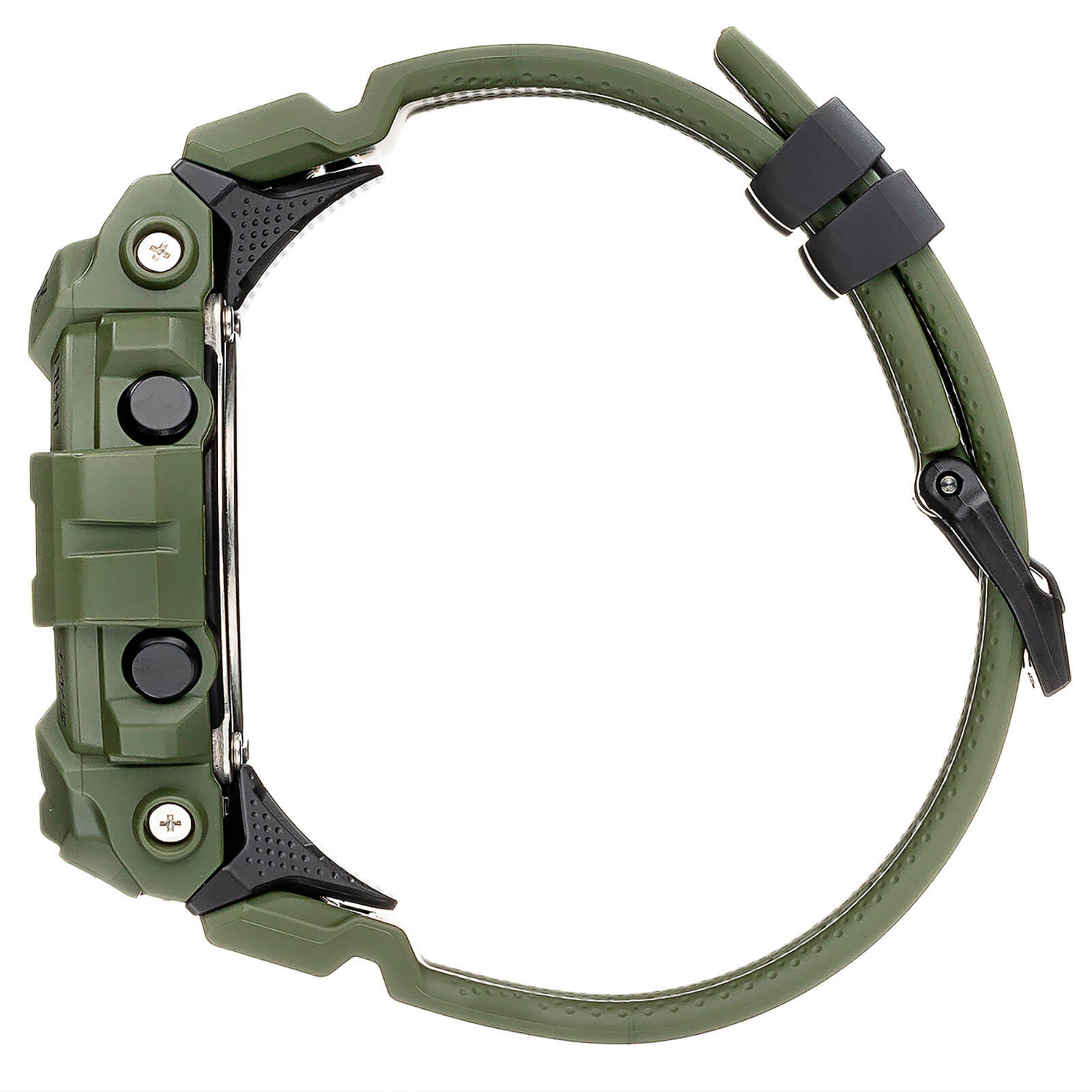 Это не просто стильный и практичный аксессуар, модель цвета хаки является идеальным помощником в правильной организации тренировок. Часы для фитнеса и бега оснащены шагомером, измеряющим их в количестве от 0 до 999999, многофункциональным таймером, секундомером с памятью на 200 результатов. С помощью технологии BluetoothBluetoothСовременная технология, позволяющая синхронизировать часы с телефоном и переносить данные. Часы с Bluetooth расширяют возможности вашего смартфона и делают его использование ещё более удобным. данные о физической активности могут передаваться и анализироваться в вашем смартфоне, для этого было разработано приложение G-Shock Connected Phone. Кварцевый механизм японского производства. Батарейка рассчитана на 3 года работы. Ударопрочный корпусУдаропрочный корпусМеханизм заключён в корпус, выполненный из современных материалов, устойчивых к ударам, механическим повреждениям и падению с высоты: инновационный пластик, карбон, нержавеющая сталь, титан. из полимерного материала. Минеральное стекло. Водостойкость до 20 бар. Циферблат со светодиодной подсветкойСветодиодная подсветкаСветодиодная или LED-подсветка обеспечивает появление яркого холодного свечения за счёт LED-элементов - маленьких лампочек. Они потребляют минимальное количество энергии, чаще всего можно встретить 1 светодиод, в нижней части циферблата., стрелки с люминесцентным покрытиемЛюминесцентное покрытиеПозволяет считывать показания времени в темноте. Производители наносят на стрелки, часовые индексы, безель или поверхность циферблата светонакопительный состав, дающий холодное свечение.. Будильник, мировое времяМировое время Полезное часовое усложнение, отображающее время в основных городах и известных областях по всему миру, оно связано с часовыми поясами, удобно для путешественников и бизнесменов. , календарь до 2099 года, функция поиска телефона, хронографХронографФункция позволяет измерять отрезки времени с особой точностью: часы, минуты, секунды. Верным признаком хронографа является наличие на циферблате 3 дополнительных окошек-счётчиков.. Габариты: 54,1 x 48,6 x 15,5 мм.