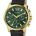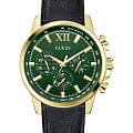 Стильные и функциональные часы Guess GW0901G4 оснащены кварцевым механизмом, что обеспечивает точность и надежность в использовании. Корпус выполнен из прочной стали с золотистым PVD-покрытиемPVDУльтратонкое покрытие наносится в технике вакуумного напыления, сочетает в себе нитрид титана особой прочности со слоем золота или оксида хрома. Несёт в себе декоративную или защитную функцию., придающей изделиям утонченный и современный вид. Циферблат украшен метками в виде штрихов и римской цифрой XII, обеспечивающими легкое считывание времени. Время отображается в двух форматах — 12-ти и 24-х часовом, что удобно для тех, кто привык к разным системам времени. Дополнительные циферблаты показывают дату и день недели, что позволяет всегда быть в курсе текущей даты без необходимости использования других устройств. Часы также оснащены тахиметромТахиметрРазмеченная шкала, располагается на ободке или безеле часов. Тахиметр позволяет рассчитать скорость на определённом участке пути, расстояние измеряется в километрах или милях., что добавляет им функциональности и может быть полезно для измерения скорости. Люминесцентное покрытиеЛюминесцентное покрытиеПозволяет считывать показания времени в темноте. Производители наносят на стрелки, часовые индексы, безель или поверхность циферблата светонакопительный состав, дающий холодное свечение. на стрелках и метках обеспечивает отличную видимость в темноте. Минеральное стеклоМинеральное стеклоМинеральное стекло представляет собой искусственно выращенный минерал кварца. Такое стекло отличается особой устойчивостью к повреждениям и царапинам. Уступает по некоторым качествам сапфировому стеклу. защищает циферблат от царапин и повреждений, а водозащита 50WR позволяет не волноваться о случайных контактах с водой, например, во время дождя. Кожаный черный ремешок с классической застежкой обеспечивает надежную фиксацию часов на руке и комфорт в ношении. Рифленая заводная головка с защитой добавляет изысканности и одновременно защищает механизм от повреждений. Эти часы идеально подойдут для тех, кто ценит стиль, функциональность и качество в одном аксессуаре.