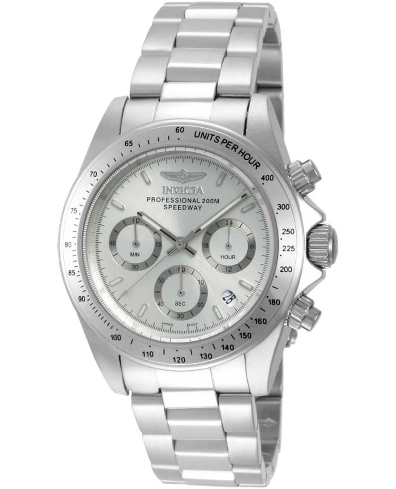 Мужские наручные часы-хронографХронографФункция позволяет измерять отрезки времени с особой точностью: часы, минуты, секунды. Верным признаком хронографа является наличие на циферблате 3 дополнительных окошек-счётчиков. Invicta IN14381 из коллекции Pro Diver сочетают в себе спортивный дизайн и надежность современных технологий. Модель обладает круглым корпусом, изготовленным из нержавеющей стали, что обеспечивает высокую устойчивость к внешним воздействиям . Браслет также выполнен из нержавеющей стали на раскладной застёжкеРаскладная застёжкаТакой тип застёжки используется только на браслетах из металла. Она никогда не раскрывается полностью, происходит разделение на 2 и более частей. Раскладывающая застёжка снизит вероятность потери часов к минимуму., гарантируя комфортное ношение и безопасность. Серебристый циферблат оснащен окном даты и дополнен функцией тахиметраТахиметрРазмеченная шкала, располагается на ободке или безеле часов. Тахиметр позволяет рассчитать скорость на определённом участке пути, расстояние измеряется в километрах или милях., что делает их практичными для различных задач . Для защиты используется минеральное стеклоМинеральное стеклоМинеральное стекло представляет собой искусственно выращенный минерал кварца. Такое стекло отличается особой устойчивостью к повреждениям и царапинам. Уступает по некоторым качествам сапфировому стеклу., обеспечивающее прочную защиту от царапин . Часы работают на японском кварцевом механизме Seiko TMI VD53B-14, что гарантирует точное время без необходимости подзаводки . Модель также является хронографомХронографФункция позволяет измерять отрезки времени с особой точностью: часы, минуты, секунды. Верным признаком хронографа является наличие на циферблате 3 дополнительных окошек-счётчиков., оснащенным функцией секундомераСекундомерСекундоме́р — прибор, способный измерять интервалы времени с точностью до долей секунды., делая ее идеальной для активного образа жизни. Водонепроницаемость часов достигает 200 метров (20 атмосфер), что позволяет использовать их во время плавания, дайвинга и других водных видов спорта . Подсветка выполнена с использованием люминесцентного покрытияЛюминесцентное покрытиеПозволяет считывать показания времени в темноте. Производители наносят на стрелки, часовые индексы, безель или поверхность циферблата светонакопительный состав, дающий холодное свечение., что обеспечивает удобство использования в темное время суток .